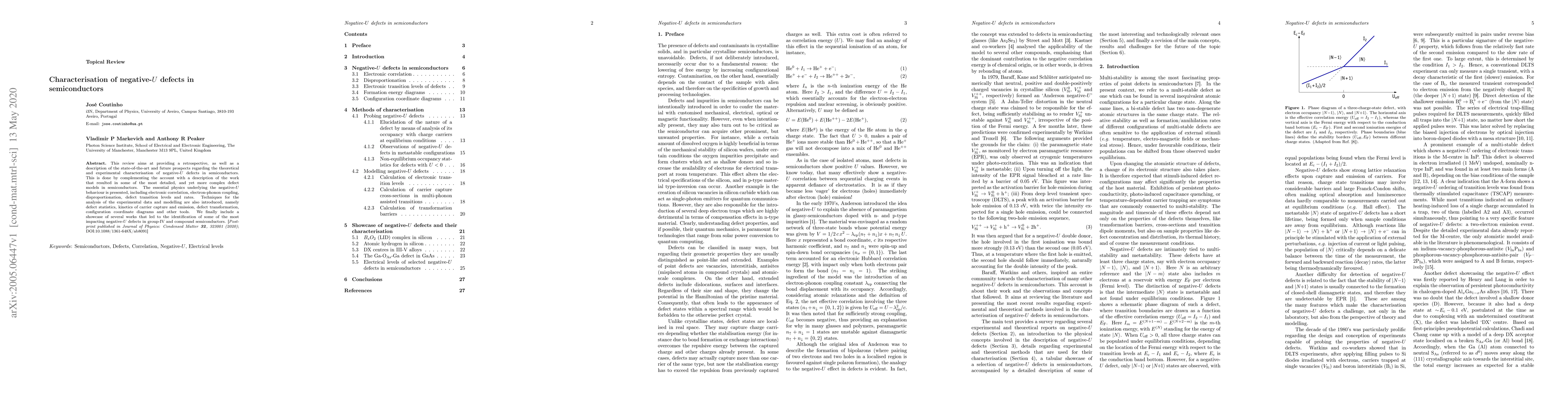 This paper reviews the theoretical and experimental characterisation of negative-U defects in semiconductors, detailing the underlying physics and analysis techniques, and showcasing significant findings in group-IV and compound semiconductors. It also explores future prospects and the complexity of defect models.