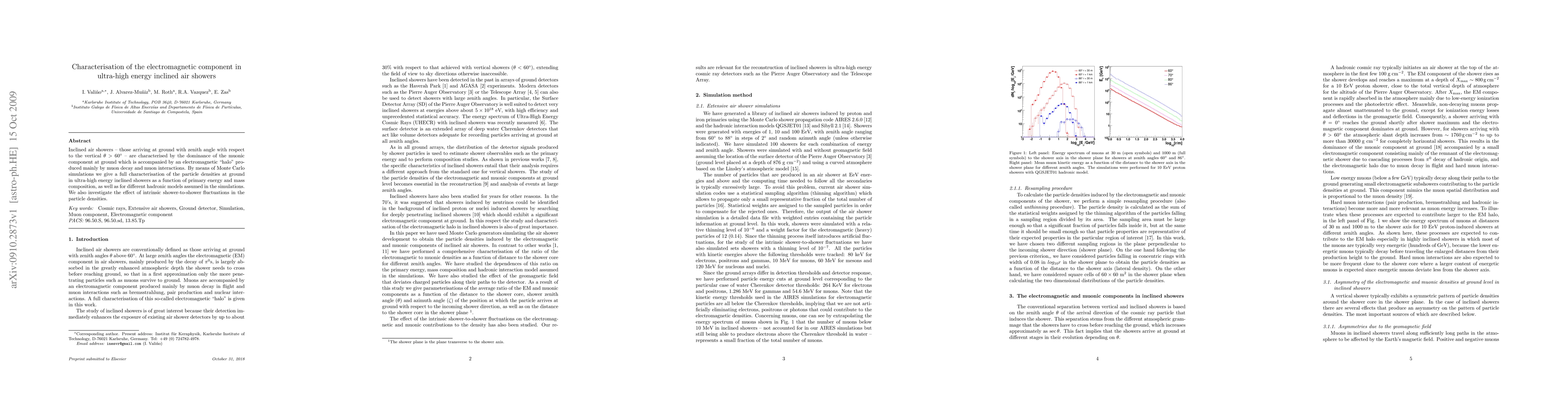 Inclined air showers - those arriving at ground with zenith angle with respect to the vertical theta > 60 deg - are characterised by the dominance of the muonic component at ground which is accompanied by an electromagnetic halo produced mainly by muon decay and muon interactions. By means of Monte Carlo simulations we give a full characterisation of the particle densities at ground in ultra-high energy inclined showers as a function of primary energy and mass composition, as well as for different hadronic models assumed in the simulations. We also investigate the effect of intrinsic shower-to-shower fluctuations in the particle densities.