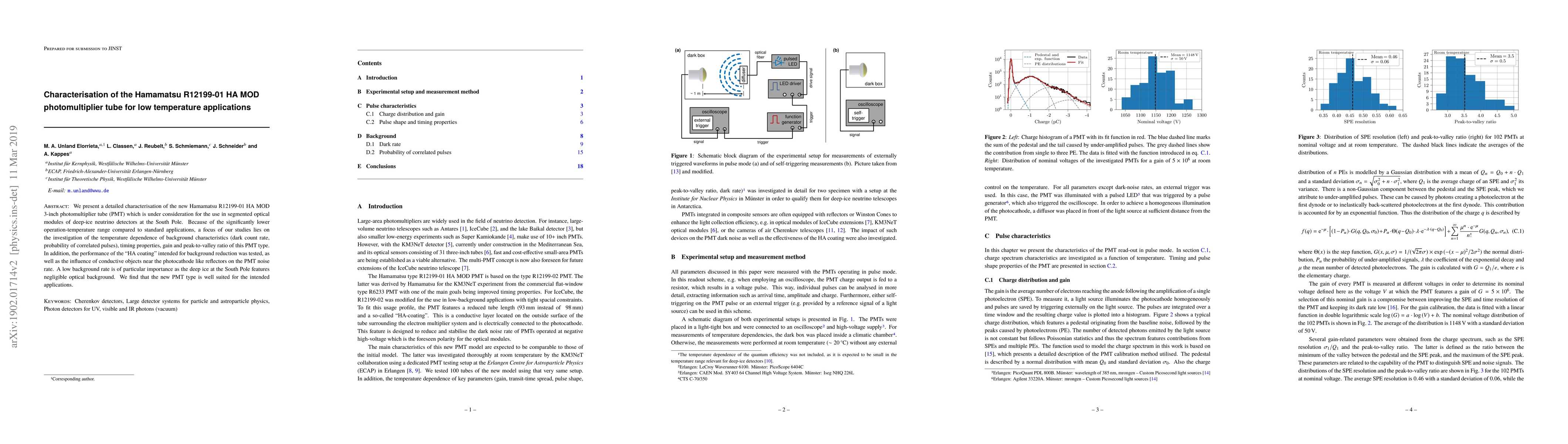 This paper characterizes the Hamamatsu R12199-01 HA MOD 3-inch PMT for low-temperature applications, specifically for South Pole neutrino detectors. Key findings indicate its suitability due to low background rates, stable timing properties, and suitable gain even at reduced operation temperatures.