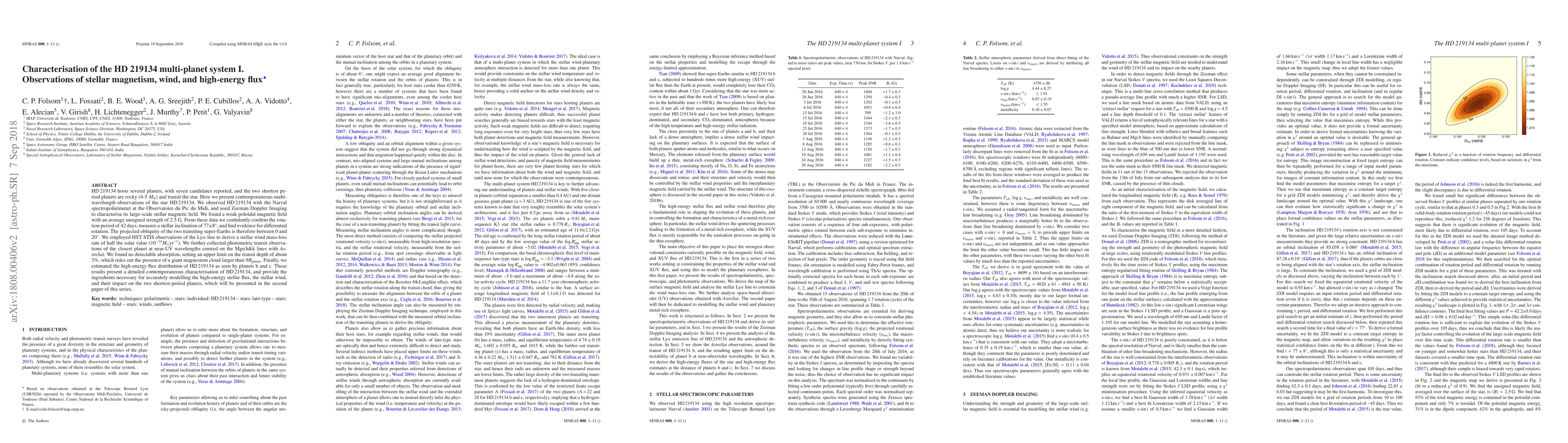 The HD 219134 multi-planet system has been studied for its stellar magnetism, wind, and high-energy flux, revealing a weak poloidal magnetic field and a stellar wind mass-loss rate half that of the Sun. The observations provide insights into the impact on the two shortest-period planets.