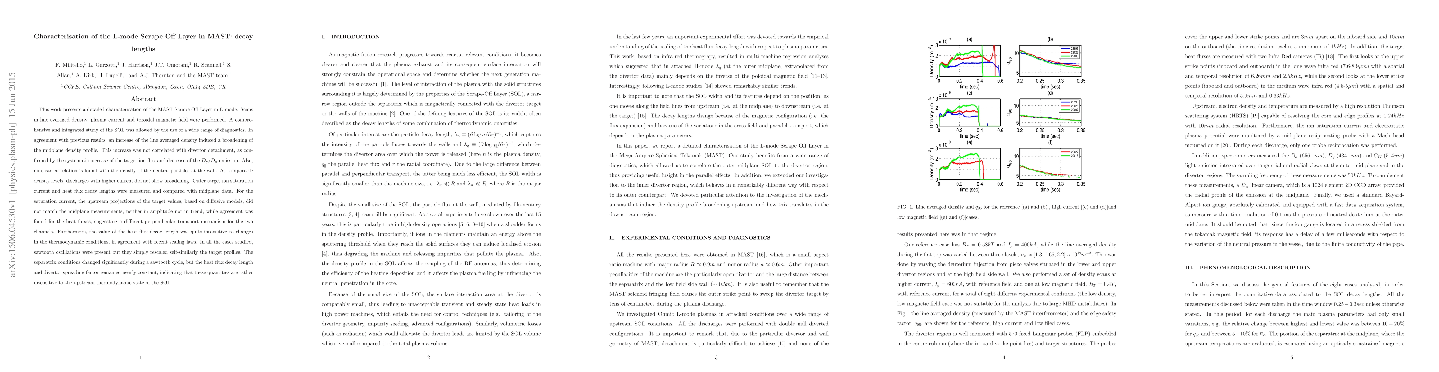 This paper characterizes the L-mode Scrape Off Layer (SOL) in MAST through diagnostics measuring line averaged density, plasma current, and toroidal magnetic field, revealing that increased density leads to a broader midplane density profile.
