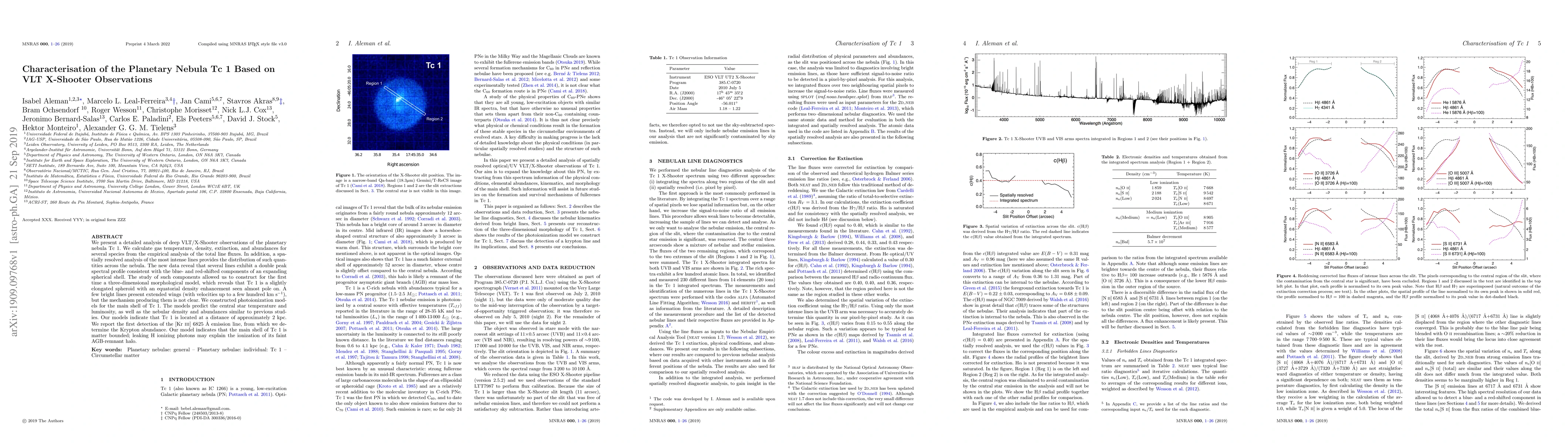 We present a detailed analysis of deep VLT/X-Shooter observations of the planetary nebula Tc 1. We calculate gas temperature, density, extinction, and abundances for several species from the empirical analysis of the total line fluxes. In addition, a spatially resolved analysis of the most intense lines provides the distribution of such quantities across the nebula. The new data reveal that several lines exhibit a double peak spectral profile consistent with the blue- and red-shifted components of an expanding spherical shell. The study of such components allowed us to construct for the first time a three-dimensional morphological model, which reveals that Tc 1 is a slightly elongated spheroid with an equatorial density enhancement seen almost pole on. A few bright lines present extended wings (with velocities up to a few hundred km/s), but the mechanism producing them is not clear. We constructed photoionization models for the main shell of Tc 1. The models predict the central star temperature and luminosity, as well as the nebular density and abundances similar to previous studies. Our models indicate that Tc 1 is located at a distance of approximately 2 kpc. We report the first detection of the [Kr III] 6825 A emission line, from which we determine the Krypton abundance. Our model indicates that the main shell of Tc 1 is matter bounded; leaking H ionizing photons may explain the ionization of its faint AGB-remnant halo.