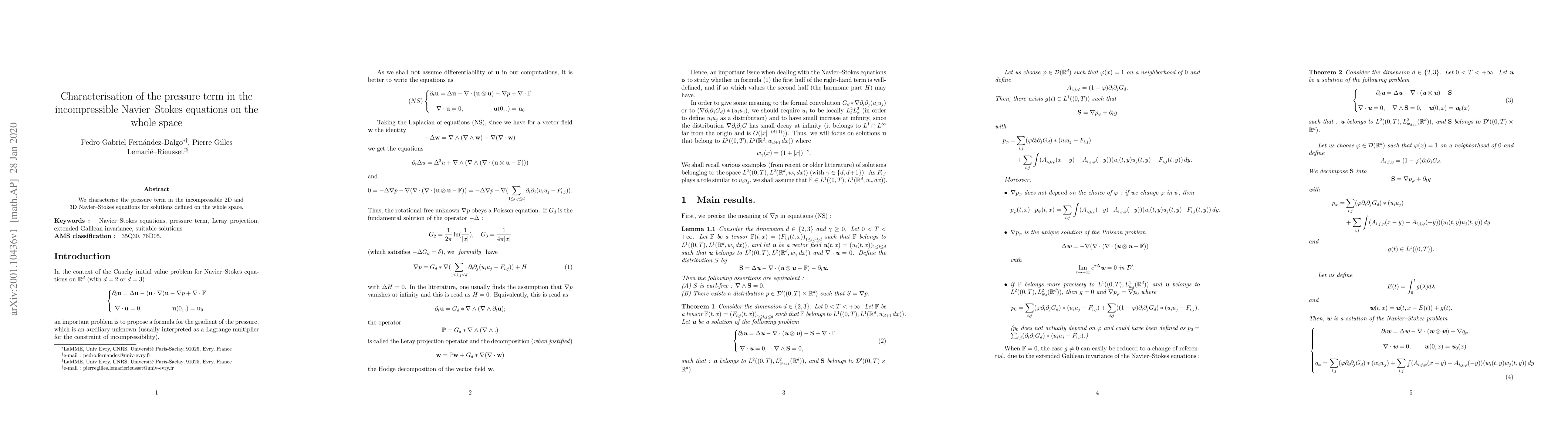 Researchers characterised the pressure term in 2D and 3D Navier-Stokes equations for solutions on the whole space, shedding light on its behavior and implications for fluid dynamics.