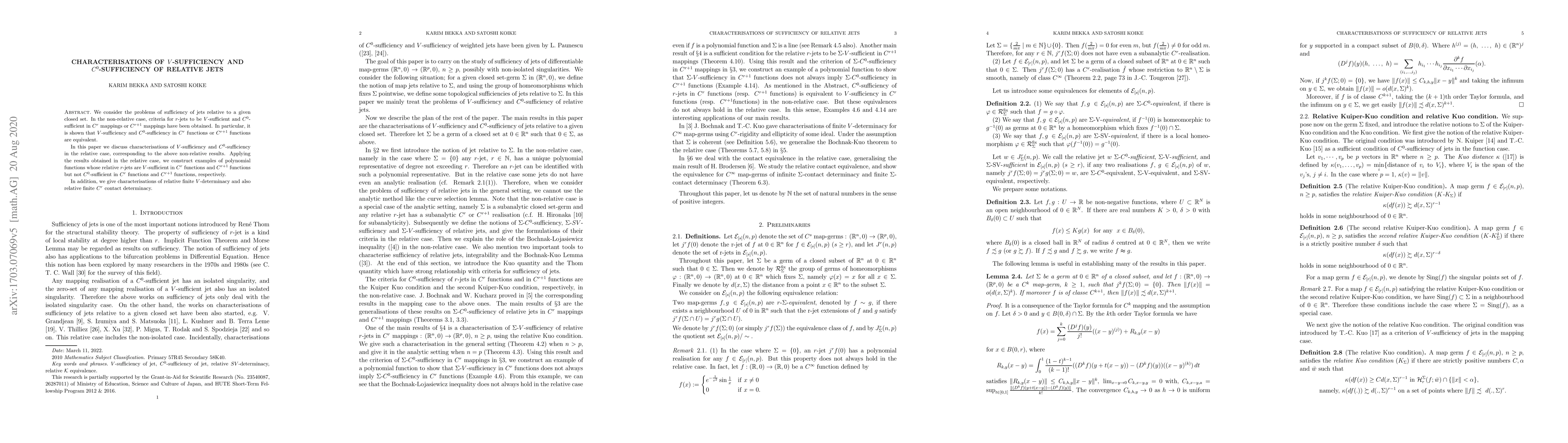 This paper explores sufficiency of relative jets in polynomial functions, introducing characterisations and examples that distinguish between V-sufficiency and C^0-sufficiency in various mappings.