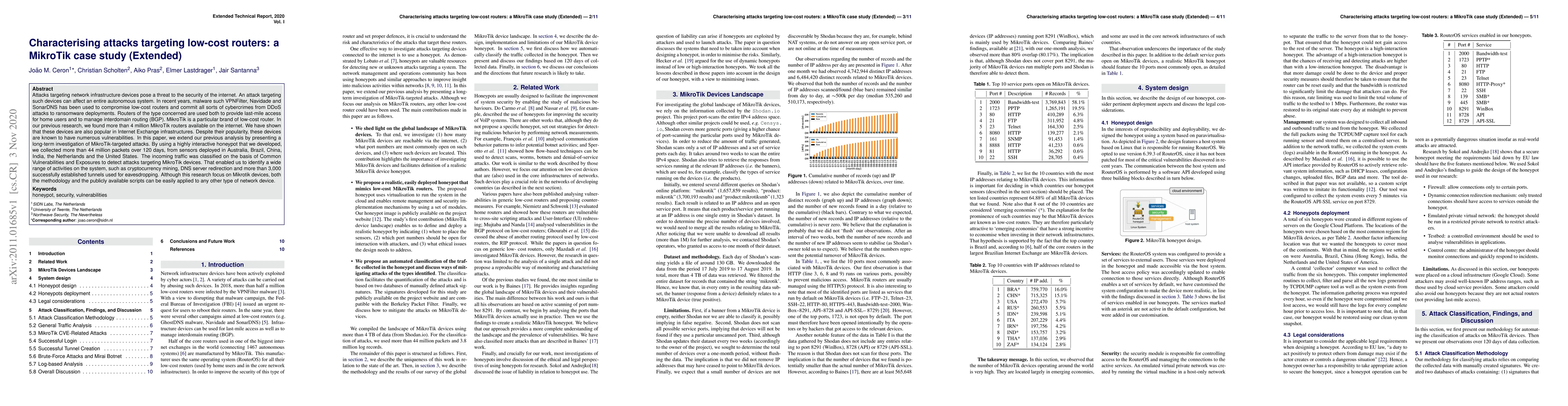 Researchers investigated attacks targeting low-cost routers, including MikroTik devices, finding over 3,000 established tunnels for eavesdropping and various malicious activities such as cryptocurrency mining and DNS redirection.