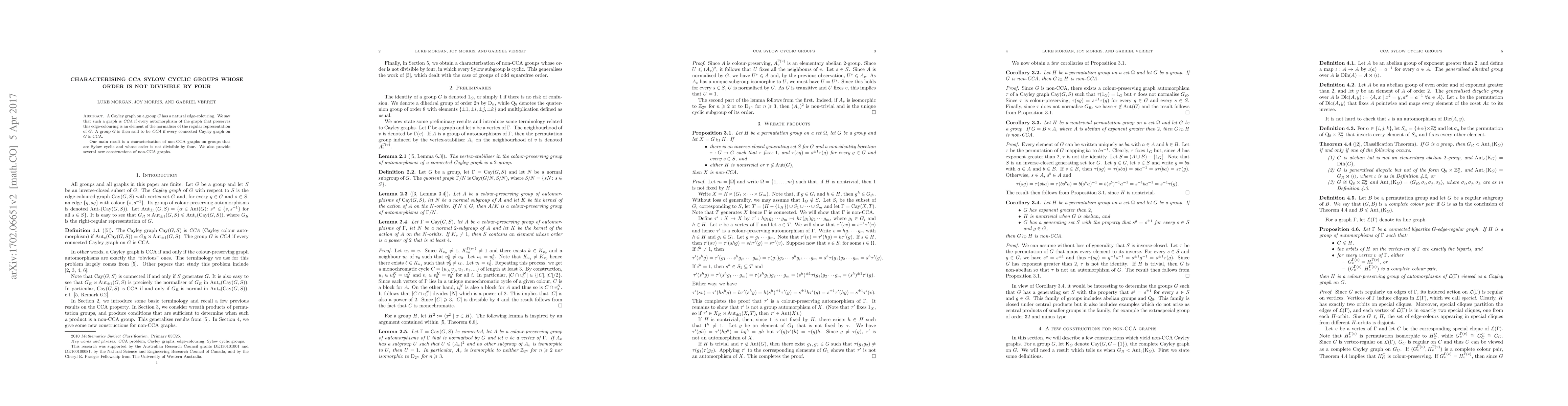 The paper characterises Sylow cyclic groups whose orders are not divisible by four and are not CCA (Colour-Preserving Automorphisms), showing none of these groups have CCA Cayley graphs. It also introduces new constructions of non-CCA graphs.