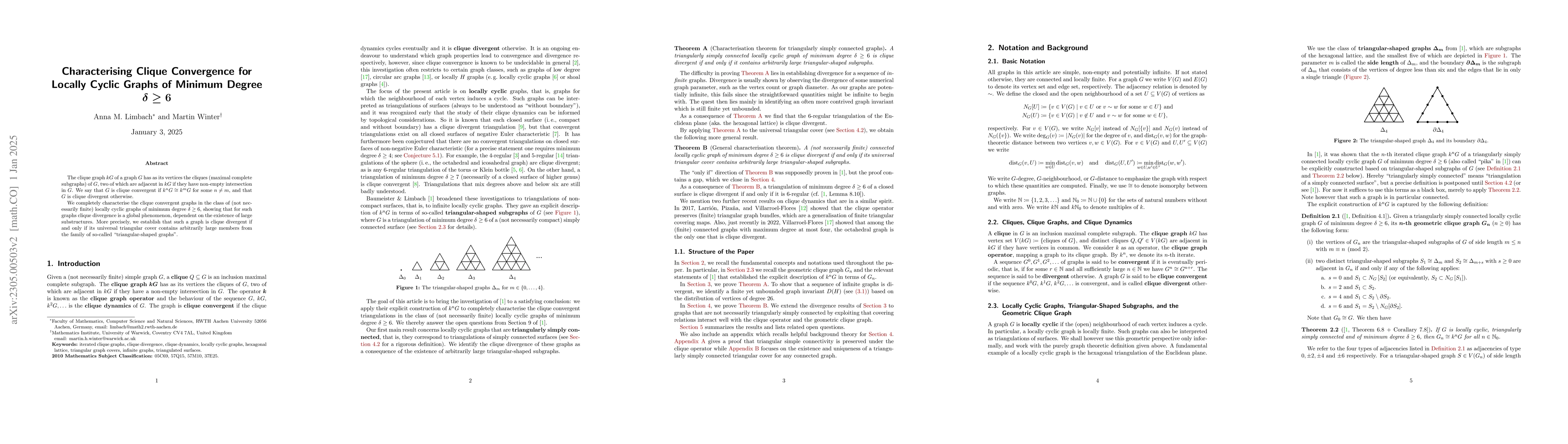 This paper characterises clique convergent locally cyclic graphs with minimum degree $\delta\ge 6$, proving that clique divergence in such graphs depends on the presence of large substructures, specifically triangular-shaped graphs in their universal triangular cover.
