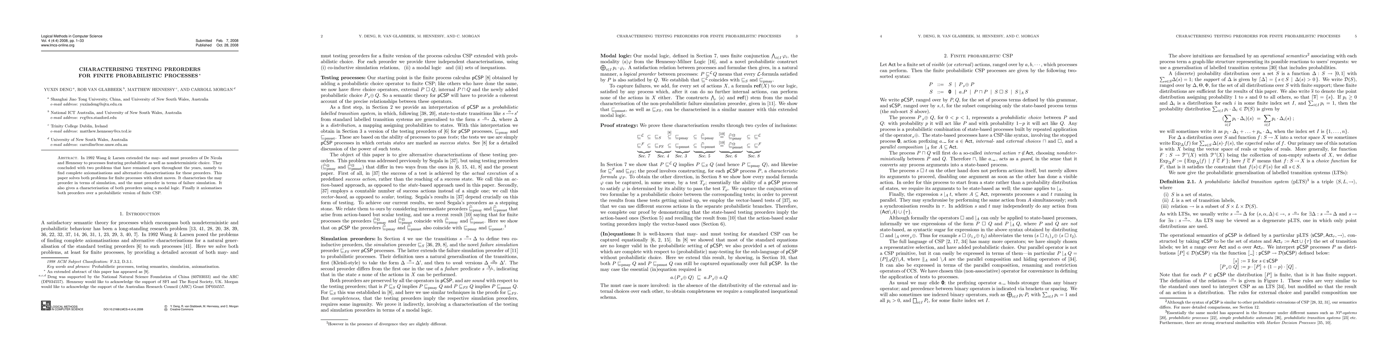 In 1992 Wang & Larsen extended the may- and must preorders of De Nicola and Hennessy to processes featuring probabilistic as well as nondeterministic choice. They concluded with two problems that have remained open throughout the years, namely to find complete axiomatisations and alternative characterisations for these preorders. This paper solves both problems for finite processes with silent moves. It characterises the may preorder in terms of simulation, and the must preorder in terms of failure simulation. It also gives a characterisation of both preorders using a modal logic. Finally it axiomatises both preorders over a probabilistic version of CSP.