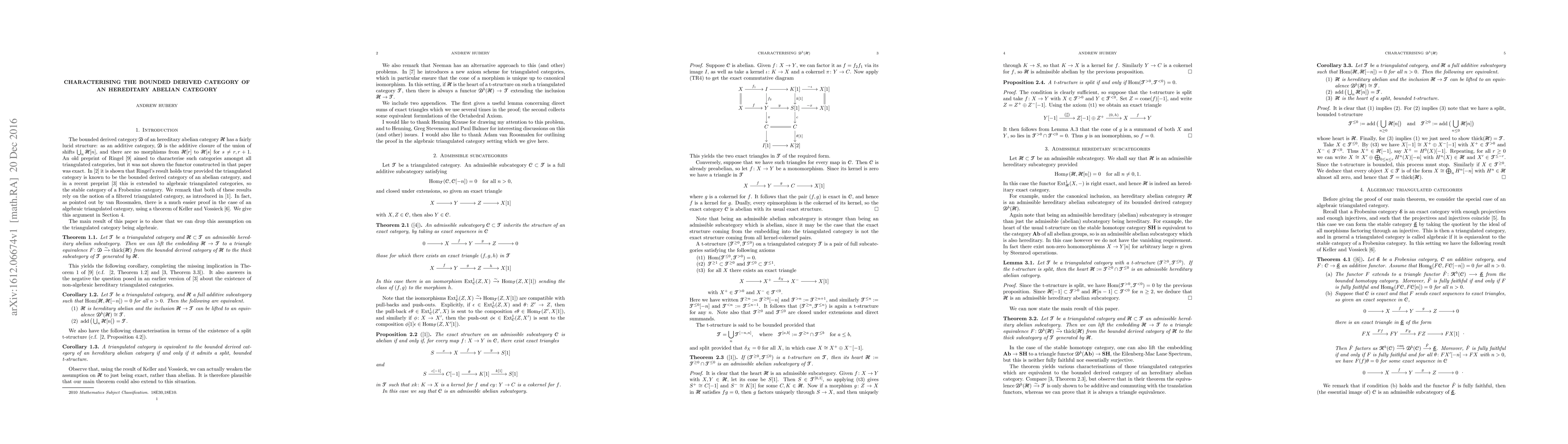 Summary: The paper demonstrates that triangulated categories containing an admissible hereditary abelian subcategory can be mapped fully faithfully into the derived category of the subcategory, leading to the conclusion that T is triangle equivalent to the derived category of an hereditary abelian category if it admits a split, bounded t-structure.