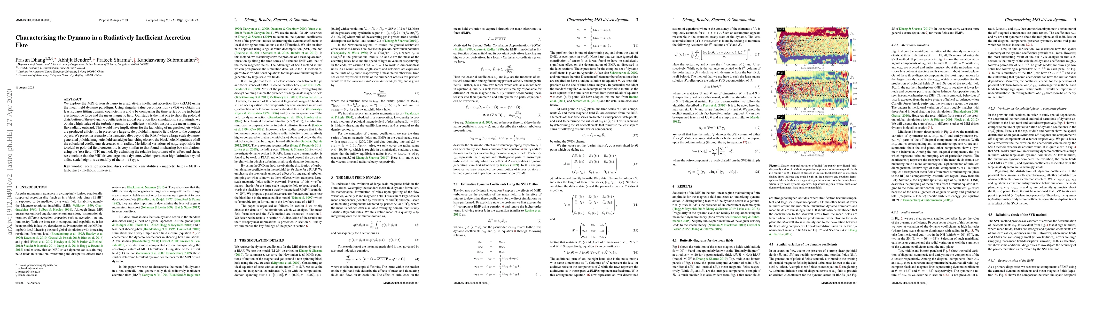 This study characterizes the MRI-driven dynamo in a radiatively inefficient accretion flow using mean field dynamo theory and singular value decomposition. It reveals a high turbulent pumping coefficient, $\gamma$, which facilitates radial outward transport of mean magnetic flux, potentially aiding in the launching of magnetised jets near the compact object.
