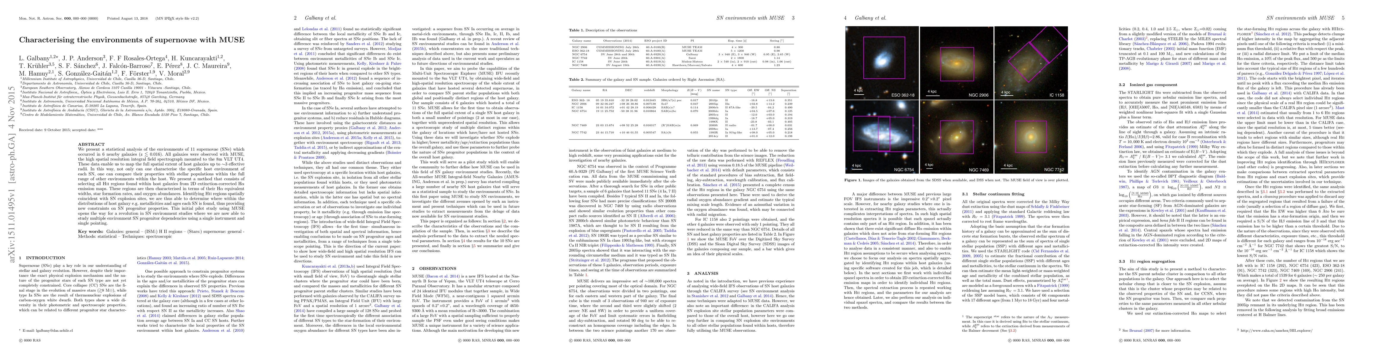 This study uses MUSE to analyze the environments of 11 supernovae in 6 nearby galaxies, mapping their host galaxies' spatial extent and identifying HII regions to determine SN locations relative to host galaxy properties. This method provides new insights into supernova progenitor properties and sets the stage for broader studies using the same instrument.