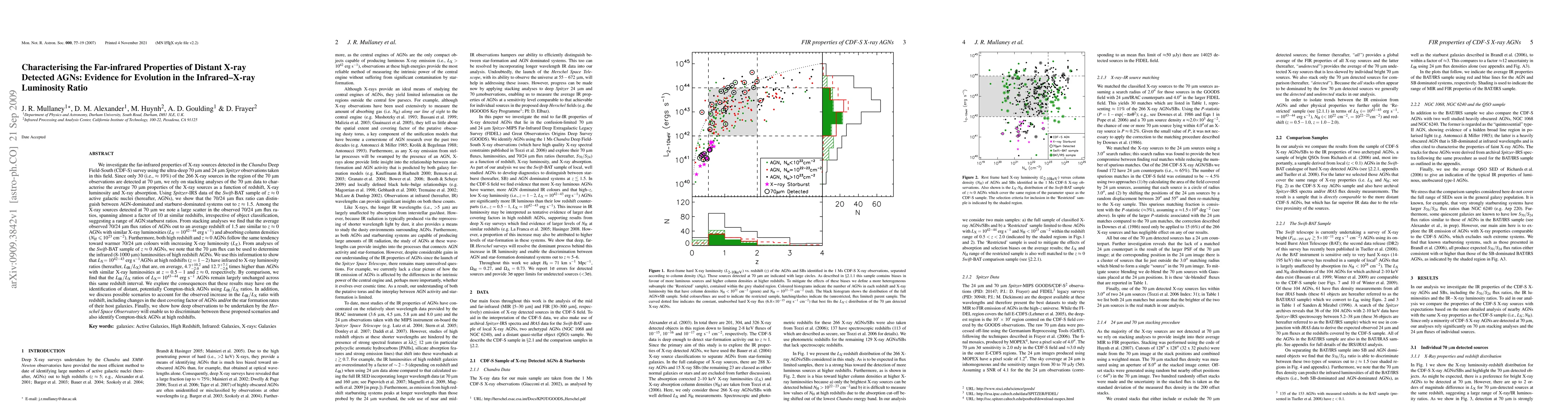 (Abridged) We investigate the far-infrared properties of X-ray sources detected in the Chandra Deep Field-South (CDF-S) survey using the ultra-deep 70um and 24um Spitzer observations taken in this field. We rely on stacking analyses of the 70um data to characterise the average 70um properties of the X-ray sources. Using Spitzer-IRS data of the Swift-BAT sample of z~0 active galactic nuclei (hereafter, AGNs), we show that the 70um/24um flux ratio can distinguish between AGN-dominated and starburst-dominated systems out to z~1.5. From stacking analysis we find that both high redshift and z~0 AGNs follow the same tendency toward warmer 70um/24um colours with increasing X-ray luminosity (L_X). We also show that the 70um flux can be used to determine the infrared (8-1000um) luminosities of high redshift AGNs. We use this information to show that L_X=10^{42-43} erg/s AGNs at high redshifts (z=1-2) have infrared to X-ray luminosity ratios (hereafter, L_IR/L_X) that are, on average, 4.7_{-2.0}^{+10.2} and 12.7^{+7.1}_{-2.6} times higher than AGNs with similar X-ray luminosities at z=0.5-1 and z~0, respectively. By comparison, we find that the L_IR/L_X ratios of L_X=10^{43-44} erg/s AGNs remain largely unchanged across this same redshift interval. We explore the consequences that these results may have on the identification of distant, potentially Compton thick AGNs using L_IR/L_X ratios. We discuss possible scenarios for the observed increase in the L_IR/L_X ratio with redshift, including changes in the dust covering factor of AGNs and/or the star formation rates of their host galaxies. Finally, we show how deep observations to be undertaken by the Herschel Space Observatory will enable us to discriminate between these proposed scenarios and also identify Compton-thick AGNs at high redshifts.