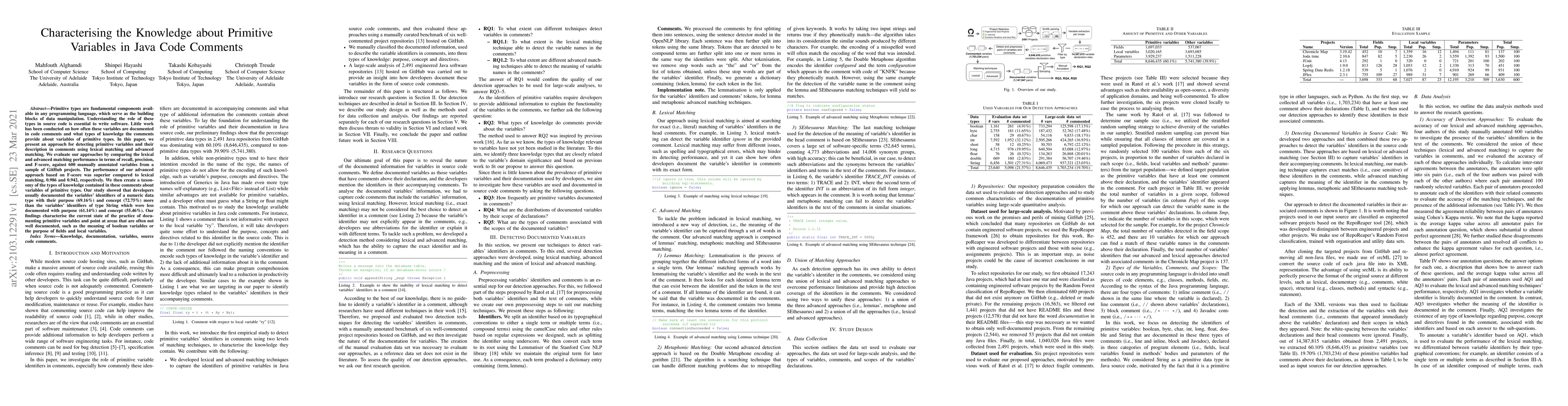 A study analyzed 600 GitHub projects to understand how often Java variables are documented in code comments, finding that numeric data types are more frequently described than String types.