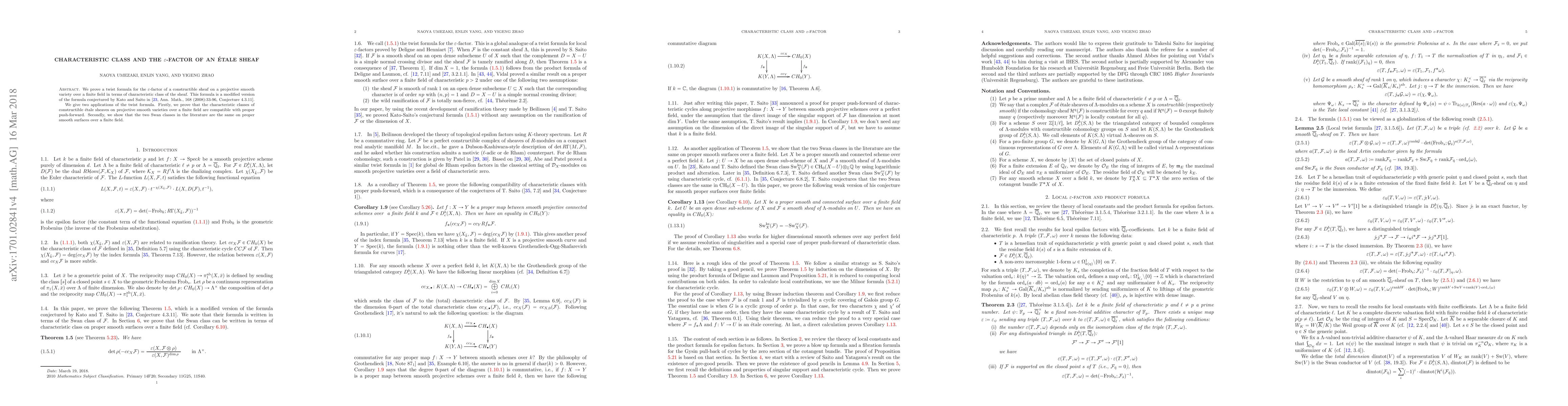 This paper proves a twist formula relating the epsilon factor of a constructible sheaf on a projective smooth variety over a finite field to its characteristic class, modifying a conjecture by Kato and Saito. It also demonstrates applications of this formula, showing compatibility of characteristic classes with proper push-forward and proving the equivalence of two Swan classes on proper smooth surfaces over a finite field.