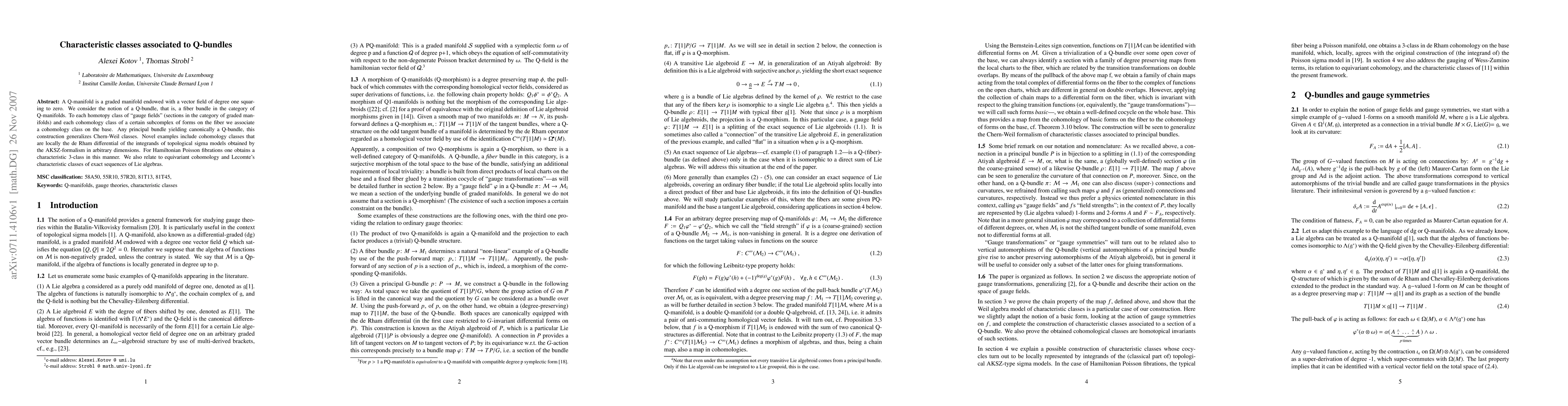 This paper explores Q-bundles, a category of fiber bundles over Q-manifolds, and introduces characteristic classes associated with them. These generalize Chern-Weil classes and apply to Hamiltonian Poisson fibrations, yielding a new characteristic 3-class, and relate to equivariant cohomology and Lecomte's classes.