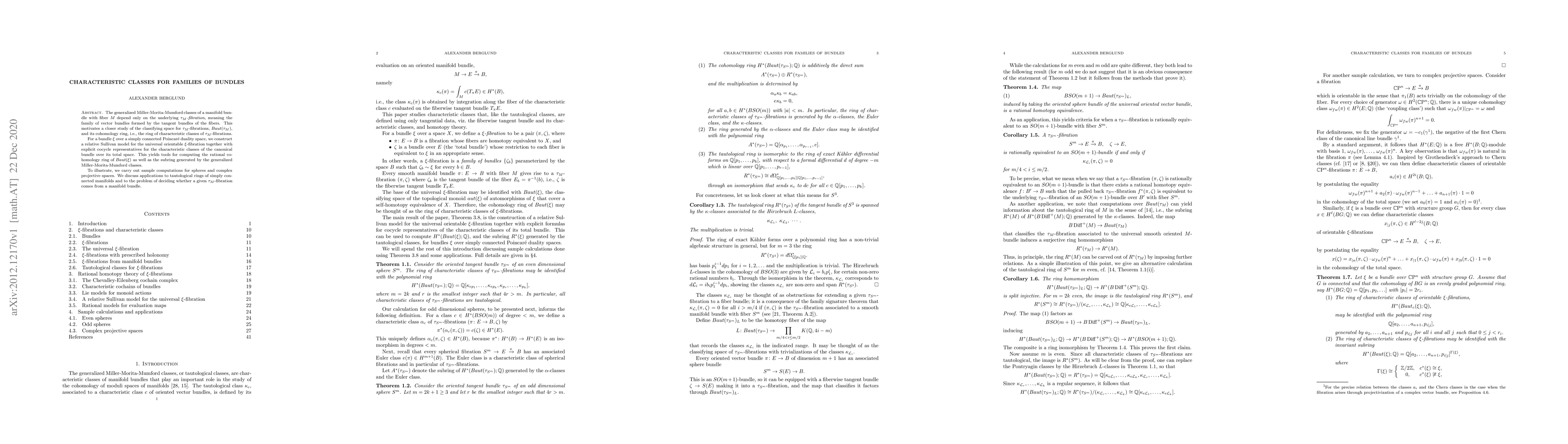 This paper explores the characteristic classes for families of vector bundles over a manifold, specifically focusing on $\tau_M$-fibrations. It constructs a relative Sullivan model for these fibrations and computes their rational cohomology ring, providing tools for applications in tautological rings and fibration classification.