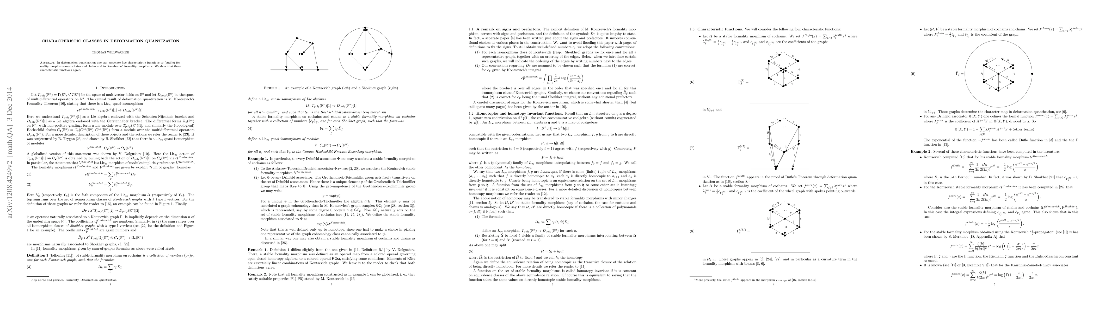 Summary: This paper explores deformation quantization and identifies five characteristic functions linked to formality morphisms. It demonstrates that these functions concur for both cochains and chains, as well as for "two-brane" formality morphisms.