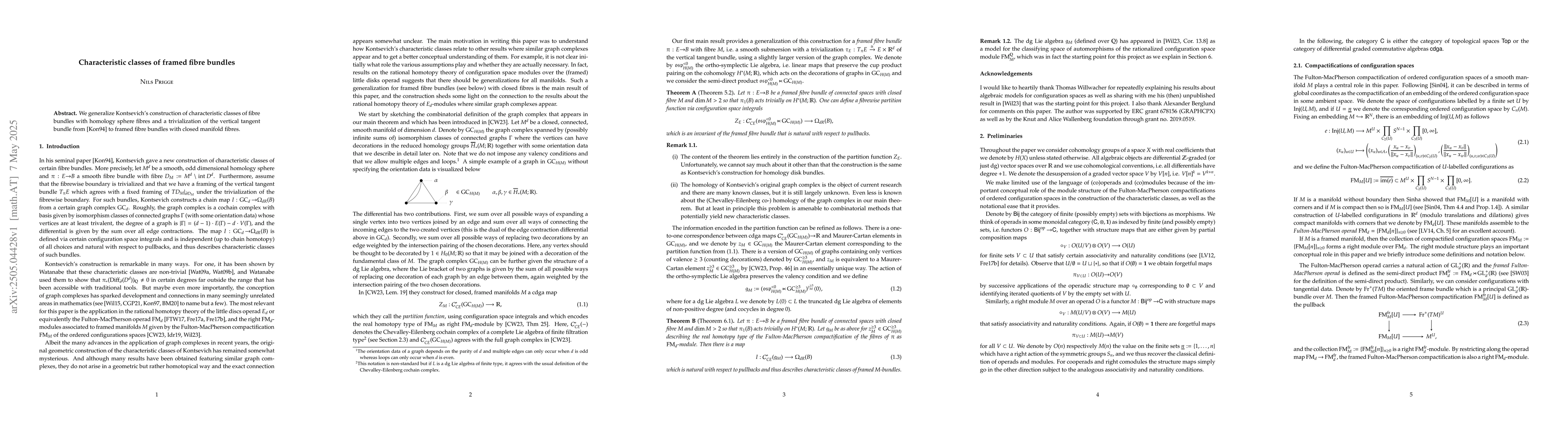 Researchers generalized characteristic classes for fibre bundles with closed manifold fibres, building on Kontsevich's work for homology sphere fibres.