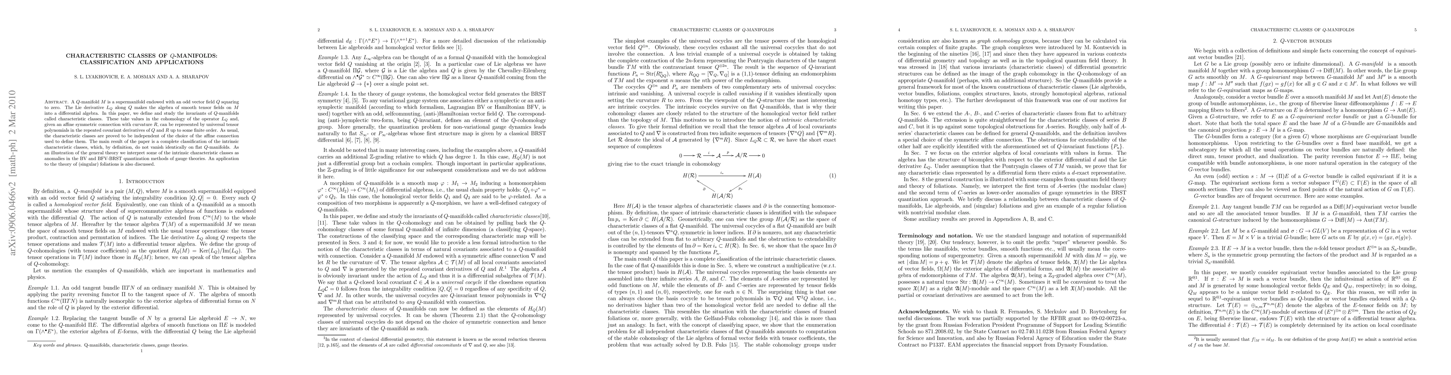 A $Q$-manifold $M$ is a supermanifold endowed with an odd vector field $Q$ squaring to zero. The Lie derivative $L_Q$ along $Q$ makes the algebra of smooth tensor fields on $M$ into a differential algebra. In this paper, we define and study the invariants of $Q$-manifolds called characteristic classes. These take values in the cohomology of the operator $L_Q$ and, given an affine symmetric connection with curvature $R$, can be represented by universal tensor polynomials in the repeated covariant derivatives of $Q$ and $R$ up to some finite order. As usual, the characteristic classes are proved to be independent of the choice of the affine connection used to define them. The main result of the paper is a complete classification of the intrinsic characteristic classes, which, by definition, do not vanish identically on flat $Q$-manifolds. As an illustration of the general theory we interpret some of the intrinsic characteristic classes as anomalies in the BV and BFV-BRST quantization methods of gauge theories. An application to the theory of (singular) foliations is also discussed.