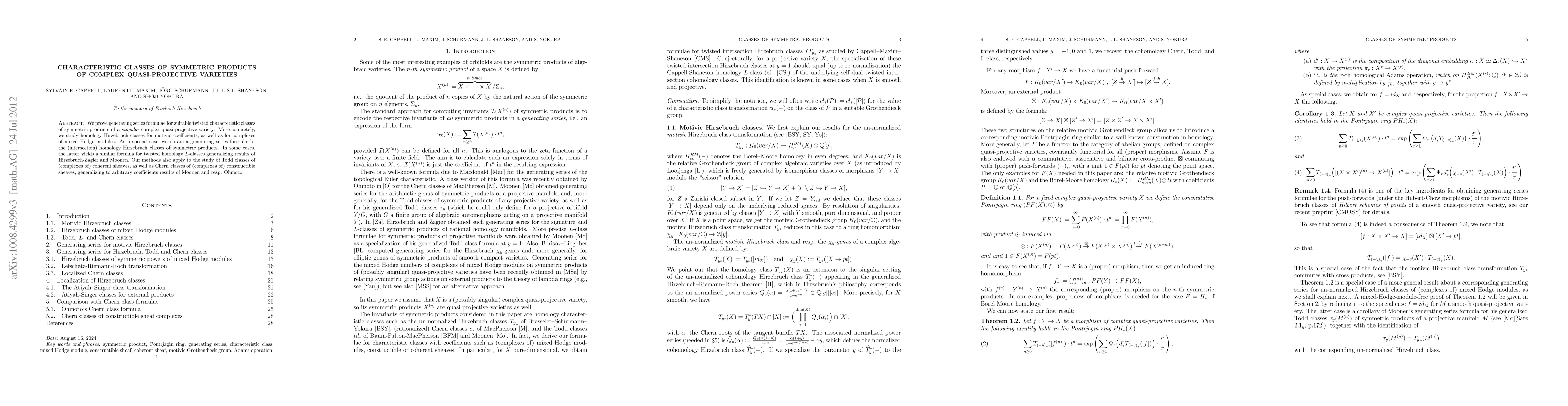 This paper presents generating series formulae for twisted characteristic classes in symmetric products of singular complex quasi-projective varieties, focusing on homology Hirzebruch classes for motivic coefficients and mixed Hodge modules. It generalizes prior results of Hirzebruch-Zagier and Moonen, and extends methods to Todd classes and Chern classes for coherent and constructible sheaves.
