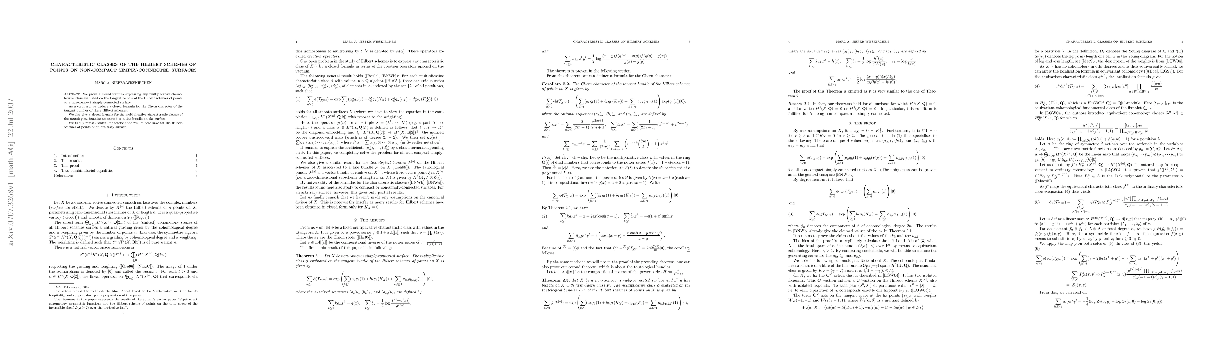 This paper derives closed formulas for multiplicative characteristic classes on tangent bundles of Hilbert schemes of points on non-compact simply-connected surfaces, leading to a closed formula for their Chern characters and implications for arbitrary surface Hilbert schemes. The study also includes formulas for characteristic classes of tautological bundles associated with line bundles on the surface.