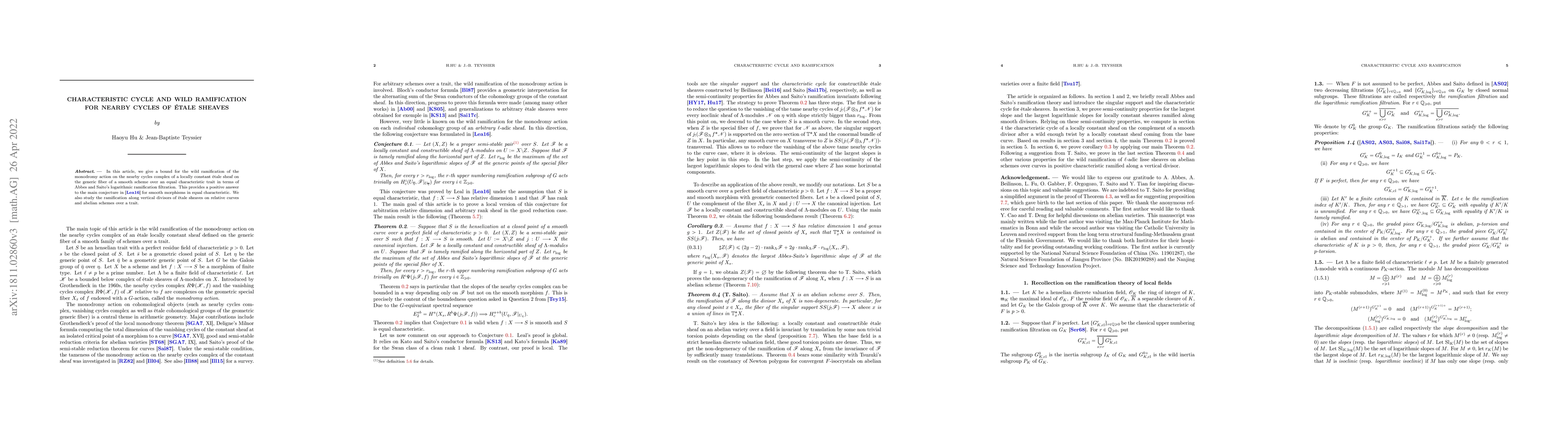 The paper introduces a method to bound wild ramification in the context of nearby cycles for étale sheaves, leveraging advanced concepts from logarithmic geometry and characteristic cycles.