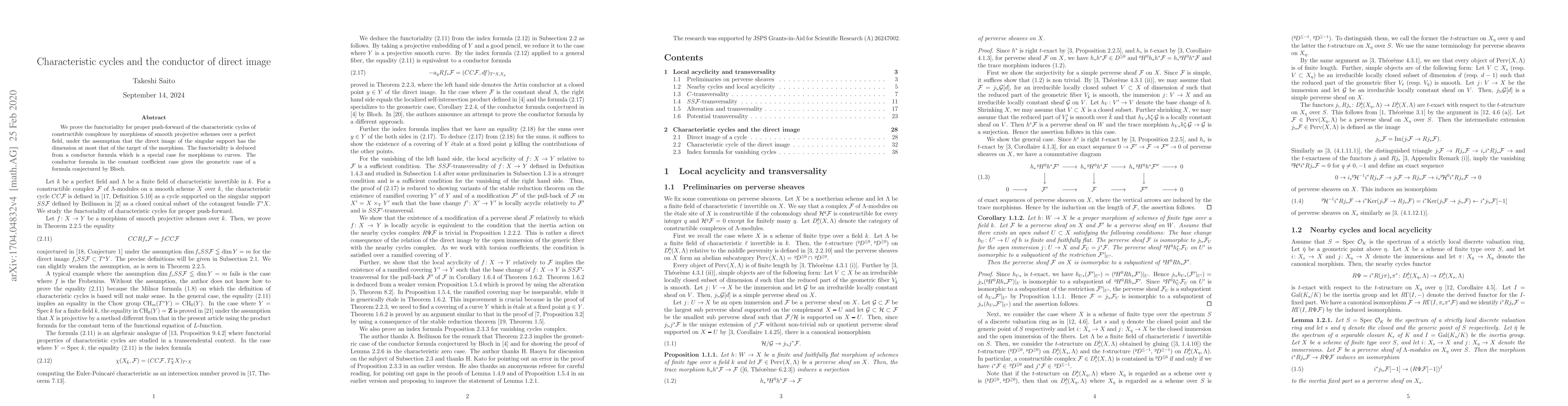 This paper proves that characteristic cycles of constructible complexes behave functorially under certain conditions, allowing for a deeper understanding of geometric phenomena such as Bloch's conjecture.