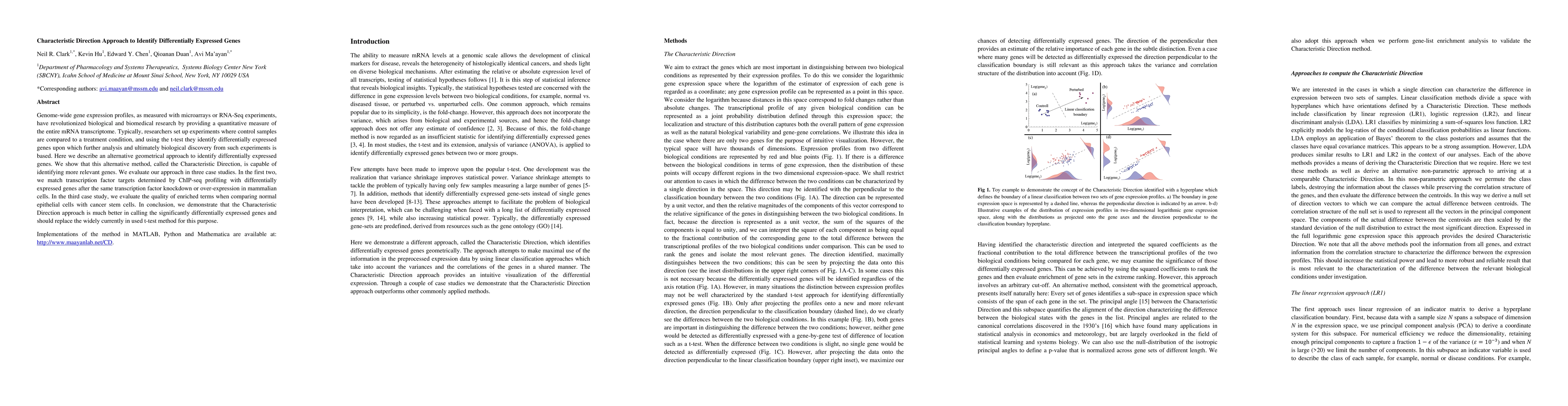 This paper proposes a new geometrical method called the Characteristic Direction to identify differentially expressed genes, demonstrating its effectiveness in three case studies. It suggests that this approach outperforms the traditional t-test method, leading to more relevant gene identification for biological discovery.