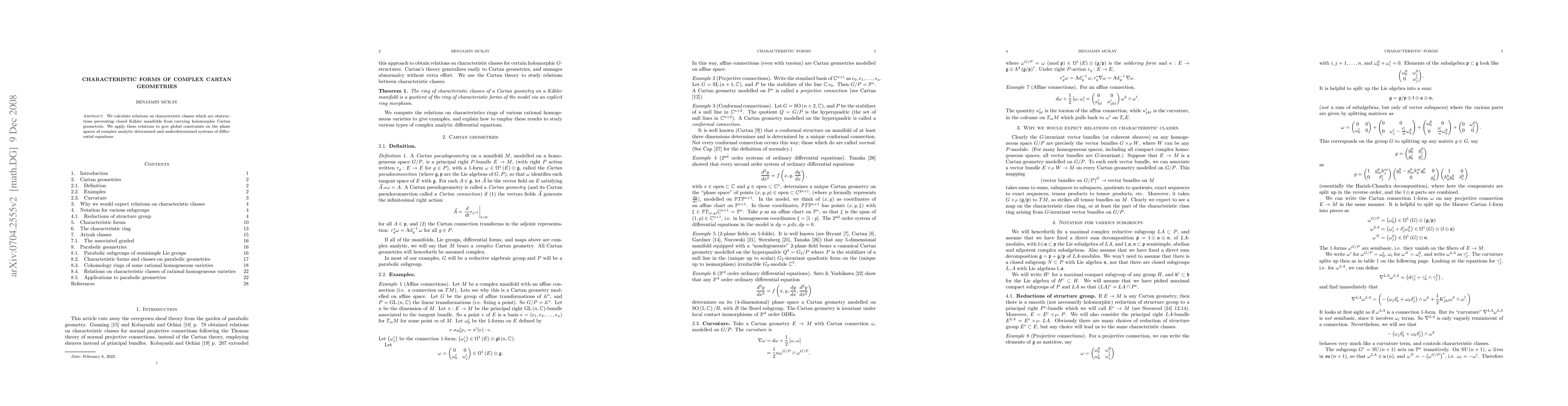 We calculate relations on characteristic classes which are obstructions preventing closed K\"ahler manifolds from carrying holomorphic Cartan geometries. We apply these relations to give global constraints on the phase spaces of complex analytic determined and underdetermined systems of differential equations.