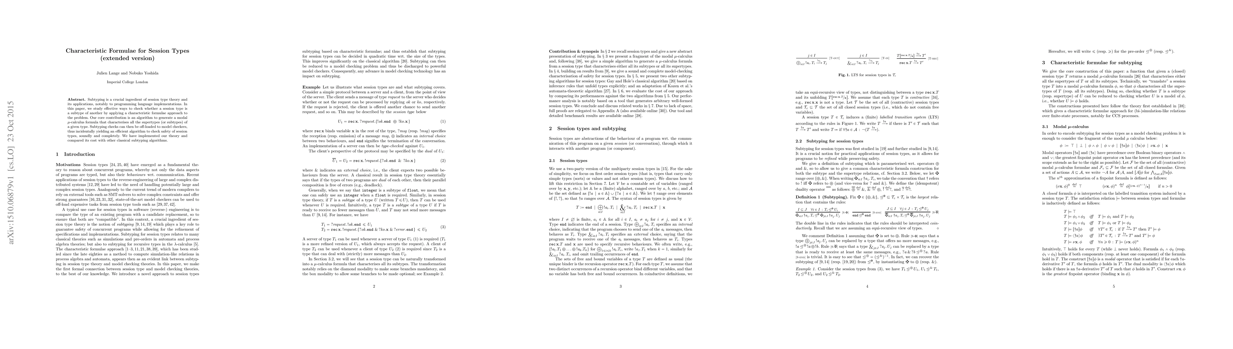 This paper proposes an algorithm for efficiently determining session type subtyping using characteristic formulae in modal mu-calculus. By generating specific formulae for supertypes or subtypes, subtyping checks are offloaded to model checkers, providing an effective method to ensure session type safety.