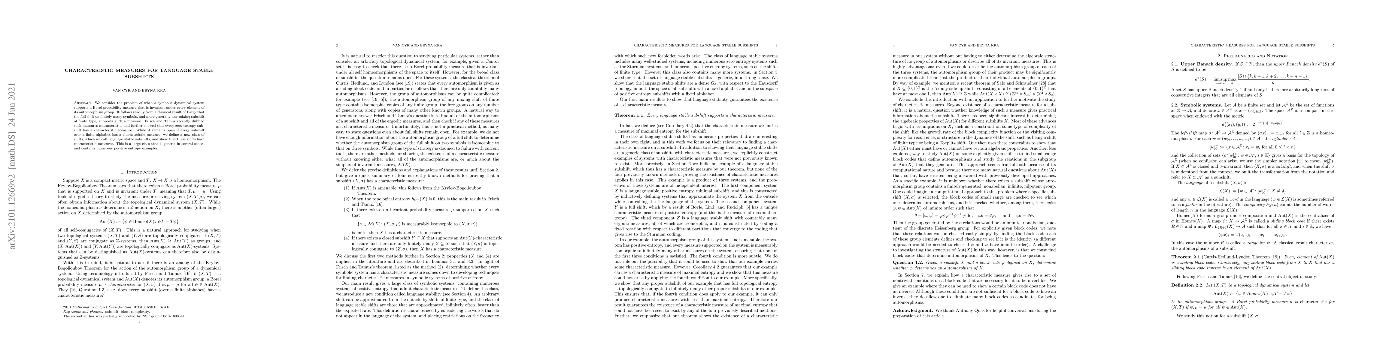 Researchers show that a new class of symbolic dynamical systems, language stable subshifts, supports characteristic measures that are invariant under the system's automorphism group, resolving an open question in the field.