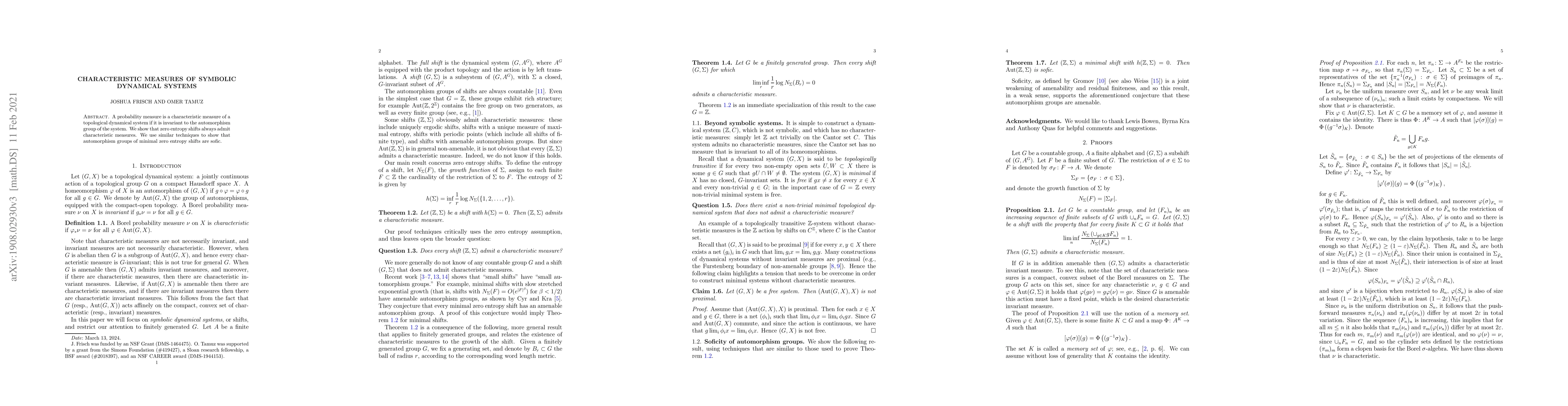 Researchers show that zero entropy shifts in topological dynamical systems always admit characteristic measures, which helps understand their properties.
