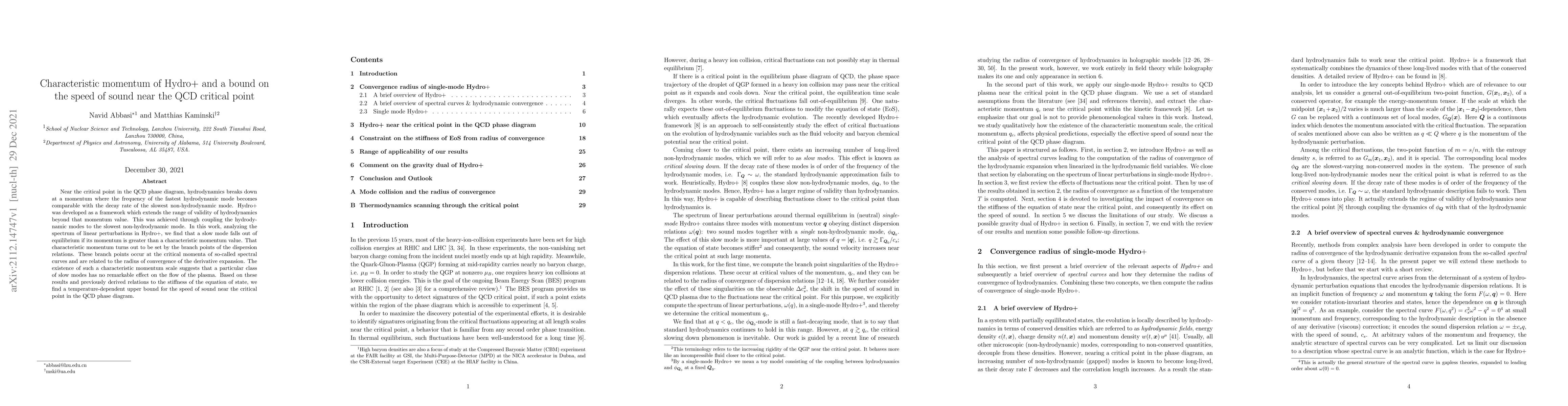 This paper investigates the characteristic momentum in Hydro+ framework, revealing a momentum threshold beyond which slow modes lose equilibrium, set by the branch points of dispersion relations. It derives a temperature-dependent upper bound for the speed of sound near the QCD critical point based on these findings and connections to the equation of state stiffness.