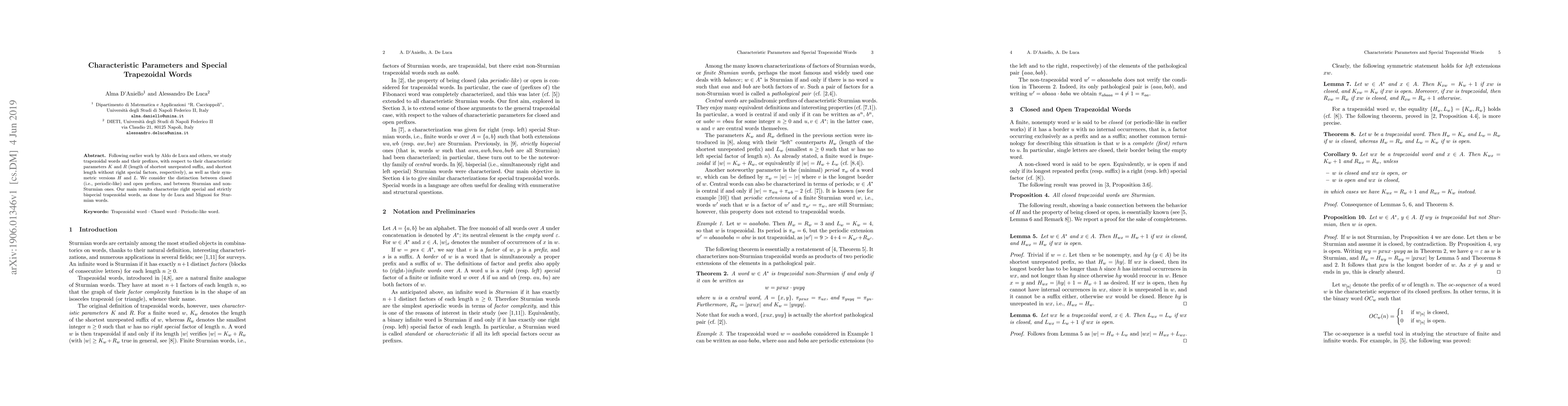 Following earlier work by Aldo de Luca and others, we study trapezoidal words and their prefixes, with respect to their characteristic parameters $K$ and $R$ (length of shortest unrepeated suffix, and shortest length without right special factors, respectively), as well as their symmetric versions $H$ and $L$. We consider the distinction between closed (i.e., periodic-like) and open prefixes, and between Sturmian and non-Sturmian ones. Our main results characterize right special and strictly bispecial trapezoidal words, as done by de Luca and Mignosi for Sturmian words.