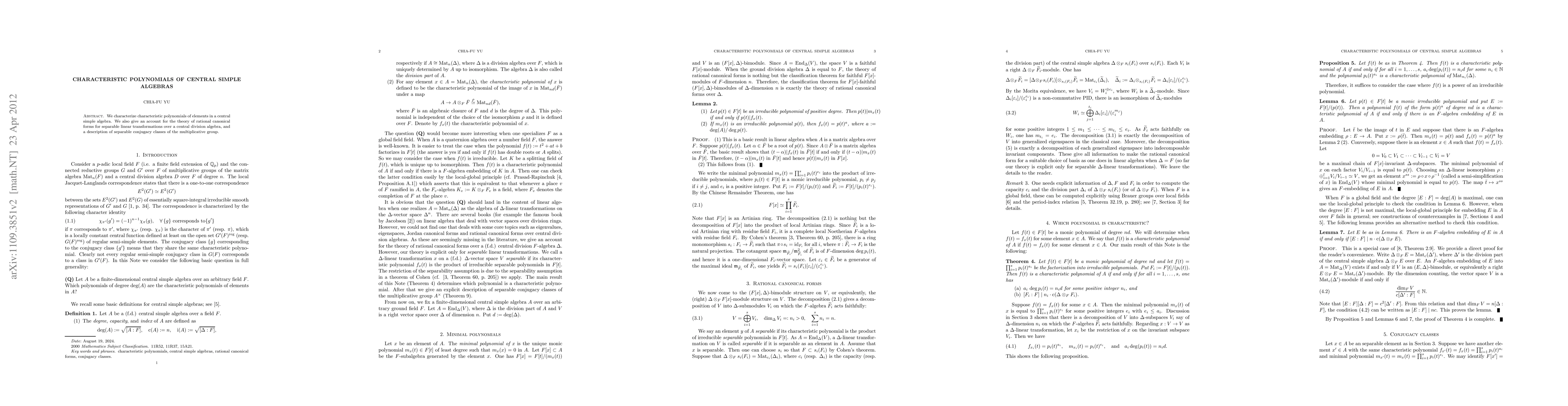 This paper characterizes the characteristic polynomials of elements in central simple algebras and explores the theory of rational canonical forms for separable linear transformations over central division algebras, alongside a description of separable conjugacy classes in the multiplicative group.
