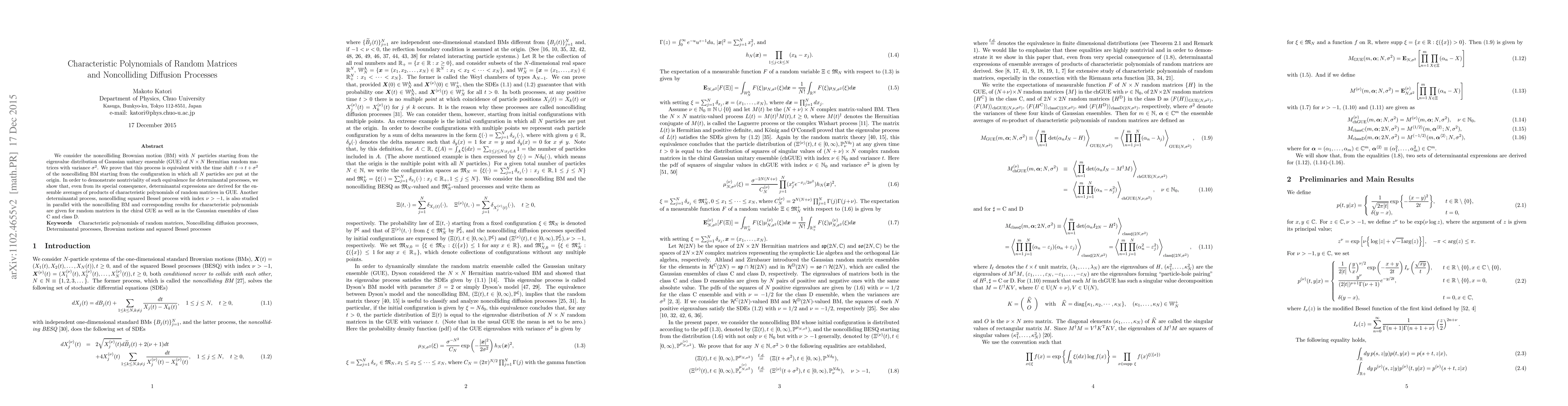 This paper establishes a connection between noncolliding Brownian motion starting from the eigenvalue distribution of Gaussian unitary ensemble matrices and a time-shifted version starting from the origin. It also derives determinantal expressions for ensemble averages of products of characteristic polynomials of random matrices in various Gaussian ensembles.