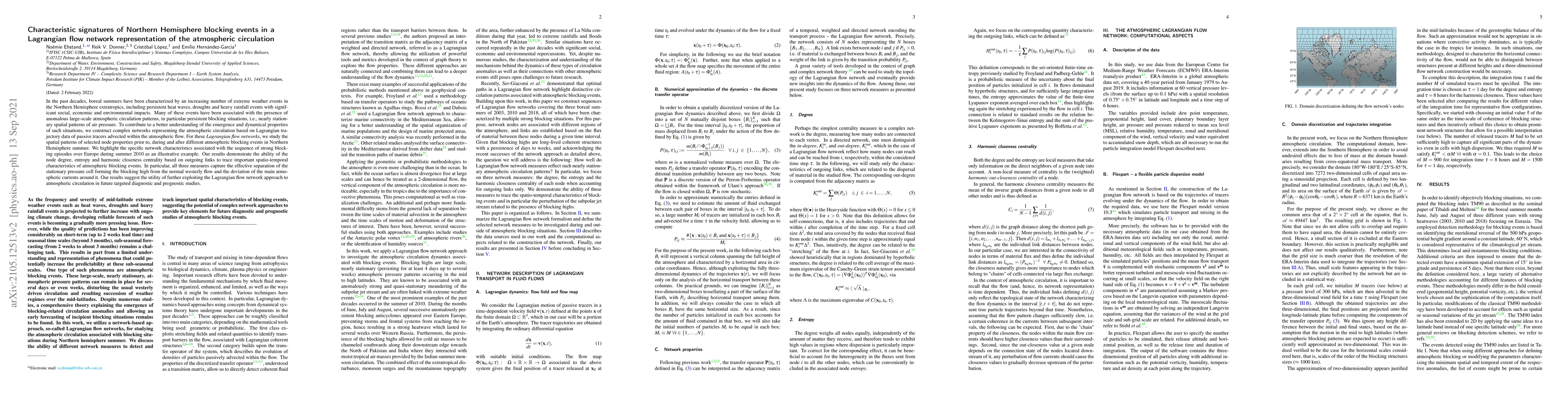 Researchers used Lagrangian flow networks to study atmospheric blocking events in Northern Hemisphere summer, identifying key characteristics that capture the separation of stationary pressure cells and deviations in atmospheric currents.