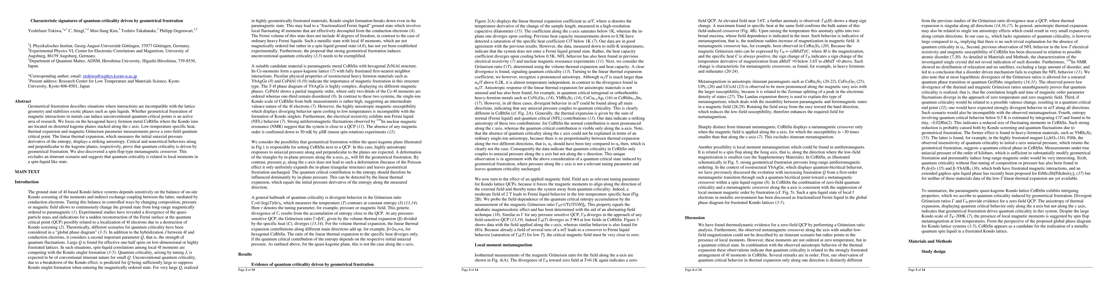 This paper investigates the quantum criticality in the hexagonal heavy fermion metal CeRhSn, driven by geometrical frustration. Experimental measurements reveal a zero-field quantum critical point and a spin-flop-type metamagnetic crossover, indicating that quantum criticality is linked to local moments in a spin-liquid state rather than itinerant electrons.
