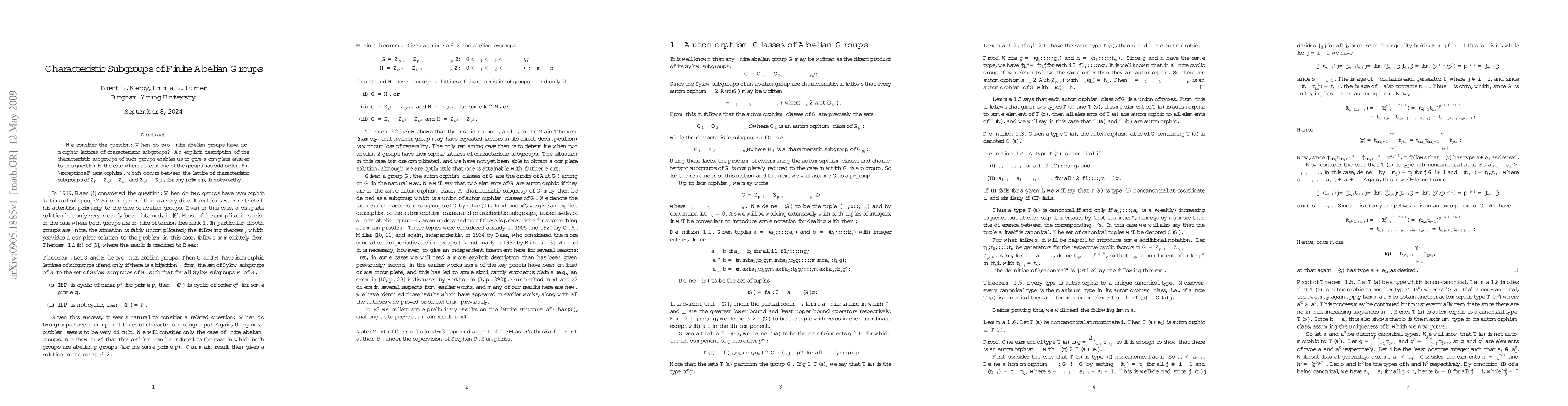This paper explores when the lattices of characteristic subgroups of two finite abelian groups are isomorphic, providing a complete answer for groups with at least one of odd order. It highlights an "exceptional" isomorphism between the characteristic subgroup lattices of $Z_p\times Z_{p^2}\times Z_{p^4}$ and $Z_{p^2} \times Z_{p^5}$ for any prime $p$.