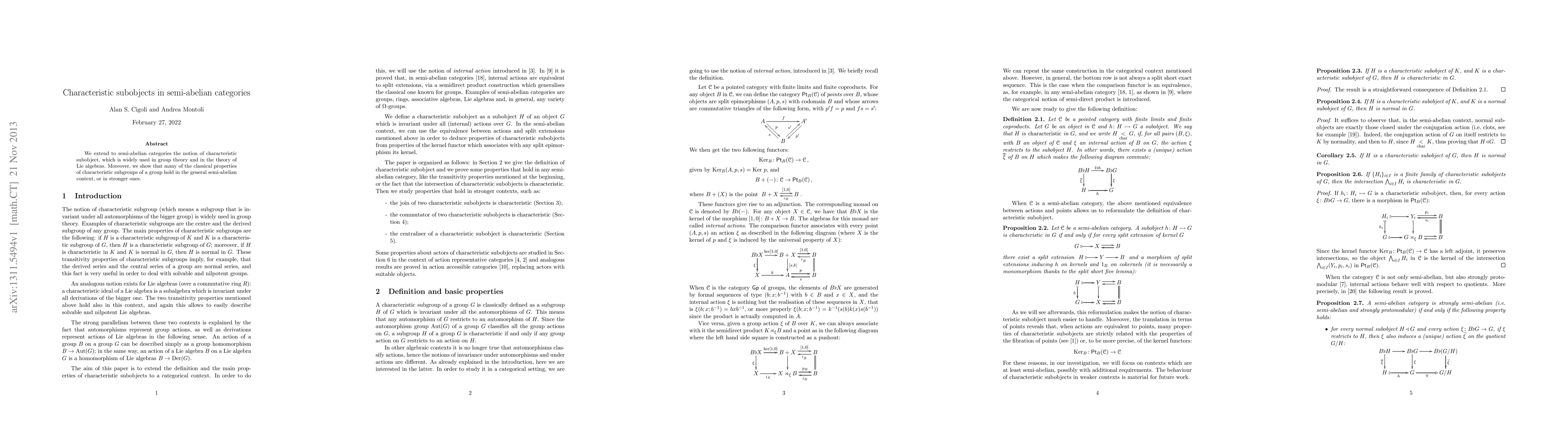 This paper extends the concept of characteristic subobjects from group theory and Lie algebras to semi-abelian categories, demonstrating that many classical properties of characteristic subgroups also apply in this broader context.