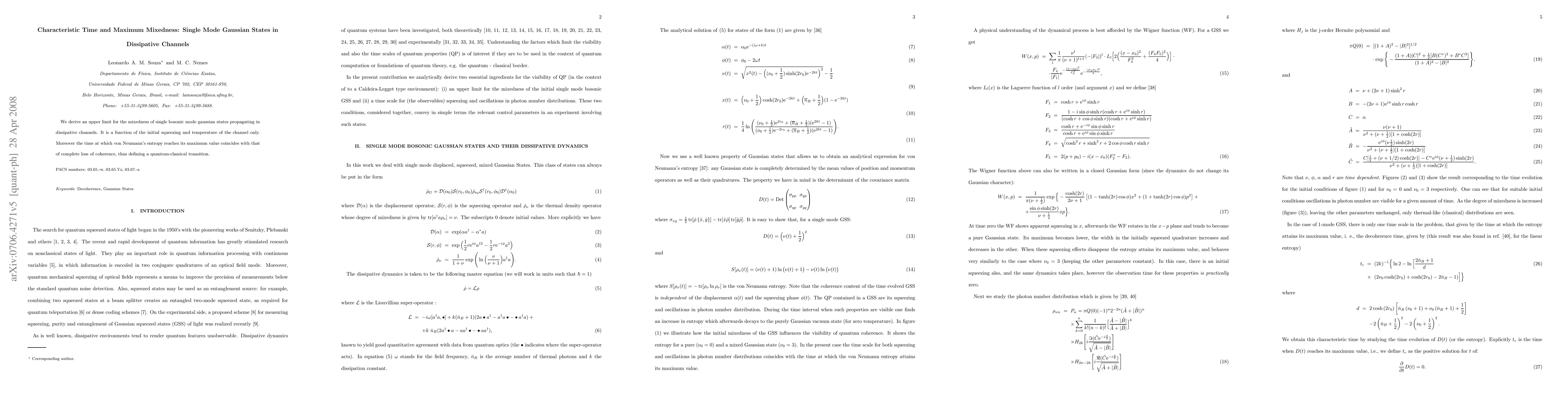 This paper establishes an upper limit for the mixedness of single bosonic mode Gaussian states in dissipative channels, dependent solely on initial squeezing and channel temperature. It also finds that the maximum von Neumann entropy and complete loss of coherence occur simultaneously, marking a quantum-classical transition.