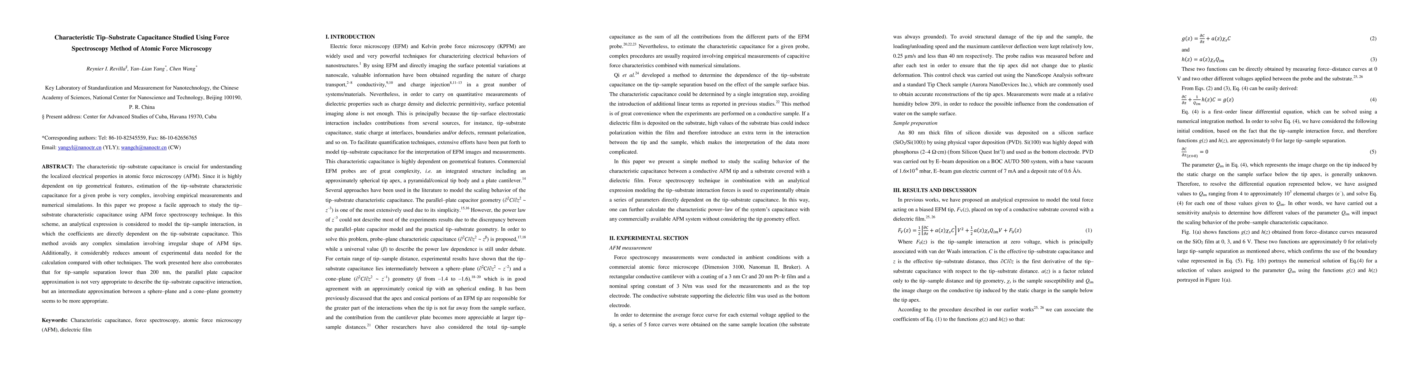 The characteristic tip_substrate capacitance is crucial for understanding the localized electrical properties in atomic force microscopy (AFM). Since it is highly dependent on tip geometrical features, estimation of the tip_substrate characteristic capacitance for a given probe is very complex, involving empirical measurements and numerical simulations. In this paper we propose a facile approach to study the tip_substrate characteristic capacitance using AFM force spectroscopy technique. In this scheme, an analytical expression is considered to model the tip_sample interaction, in which the coefficients are directly dependent on the tip_substrate capacitance. This method avoids any complex simulation involving irregular shape of AFM tips. Additionally, it considerably reduces amount of experimental data needed for the calculation compared with other techniques. The work presented here also corroborates that for tip_sample separation lower than 200 nm, the parallel plate_capacitor approximation is not very appropriate to describe the tip_substrate capacitive interaction, but an intermediate approximation between a sphere_plane and a cone_plane geometry seems to be more appropriate.