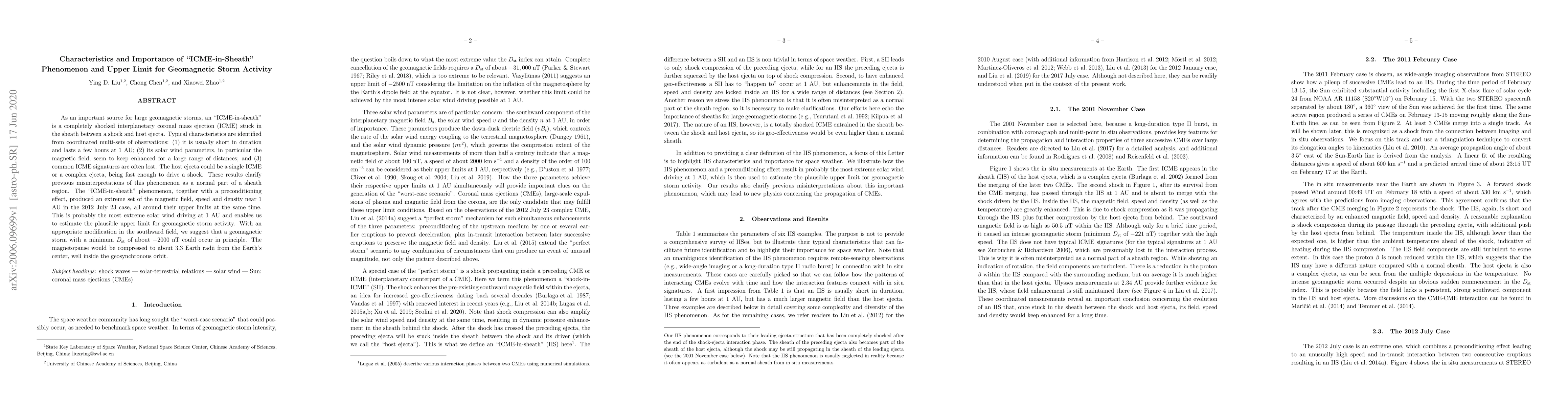 This paper identifies the "ICME-in-sheath" phenomenon as a significant driver of large geomagnetic storms, characterized by short duration and enhanced magnetic fields. It estimates the upper limit for geomagnetic storm activity, suggesting a potential $D_{\rm st}$ of $-2000$ nT, compressing the magnetopause to 3.3 Earth radii.