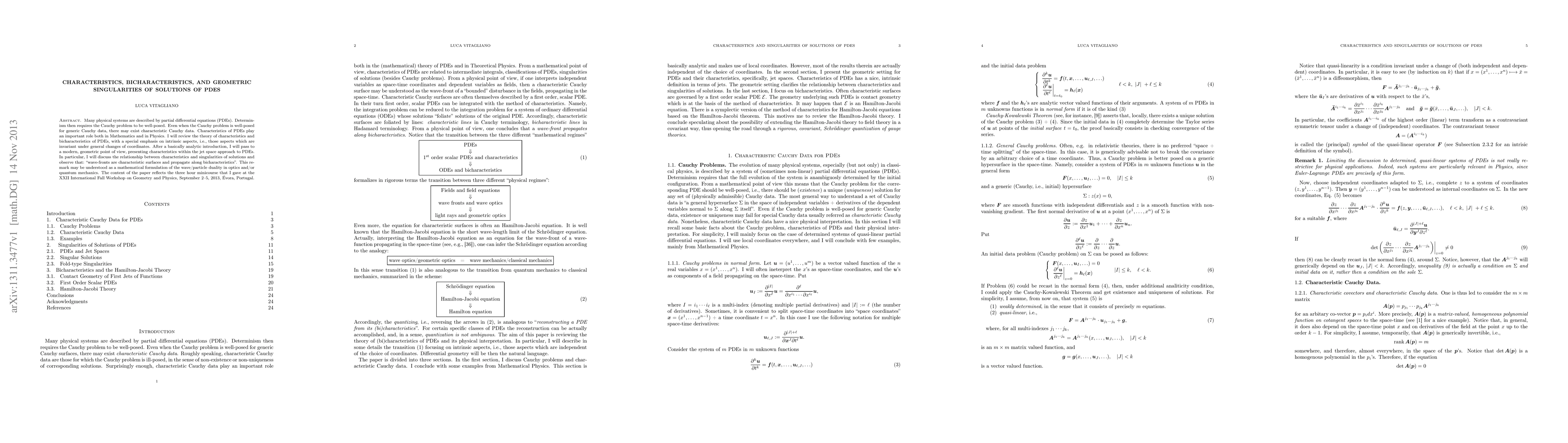 Many physical systems are described by partial differential equations (PDEs). Determinism then requires the Cauchy problem to be well-posed. Even when the Cauchy problem is well-posed for generic Cauchy data, there may exist characteristic Cauchy data. Characteristics of PDEs play an important role both in Mathematics and in Physics. I will review the theory of characteristics and bicharacteristics of PDEs, with a special emphasis on intrinsic aspects, i.e., those aspects which are invariant under general changes of coordinates. After a basically analytic introduction, I will pass to a modern, geometric point of view, presenting characteristics within the jet space approach to PDEs. In particular, I will discuss the relationship between characteristics and singularities of solutions and observe that: "wave-fronts are characteristic surfaces and propagate along bicharacteristics". This remark may be understood as a mathematical formulation of the wave/particle duality in optics and/or quantum mechanics. The content of the paper reflects the three hour minicourse that I gave at the XXII International Fall Workshop on Geometry and Physics, September 2-5, 2013, Evora, Portugal.