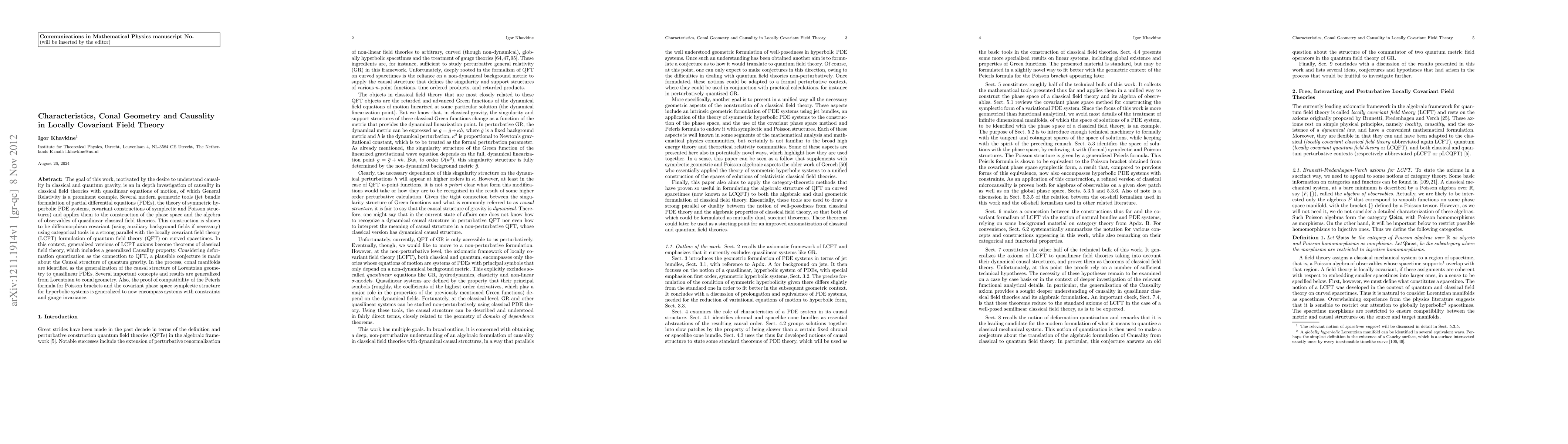This paper explores causality in quasilinear classical field theories, employing modern geometric tools to construct the phase space and algebra of observables. It generalizes Lorentzian geometry to conal geometry and conjectures on the causal structure of quantum gravity, drawing parallels with locally covariant field theory.
