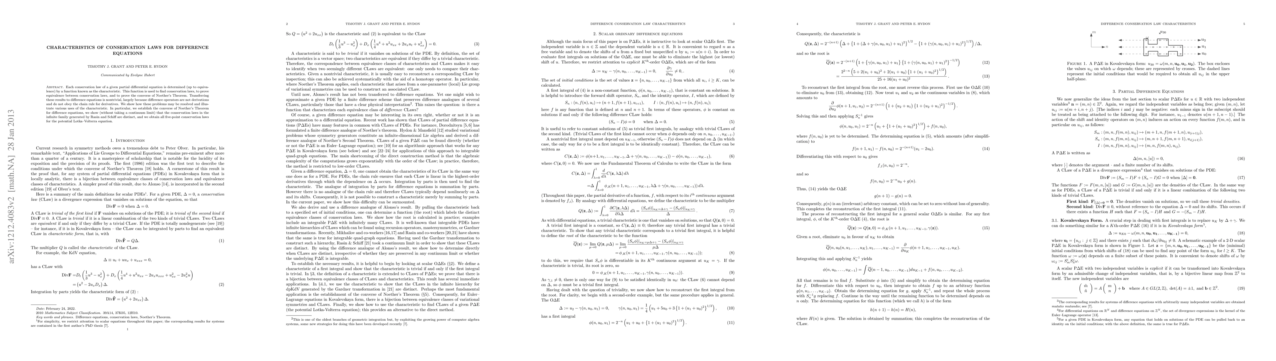 Each conservation law of a given partial differential equation is determined (up to equivalence) by a function known as the characteristic. This function is used to find conservation laws, to prove equivalence between conservation laws, and to prove the converse of Noether's Theorem. Transferring these results to difference equations is nontrivial, largely because difference operators are not derivations and do not obey the chain rule for derivatives. We show how these problems may be resolved and illustrate various uses of the characteristic. In particular, we establish the converse of Noether's Theorem for difference equations, we show that the infinite family of conservation laws generated by Rasin and Schiff using the Gardner transformation are distinct (without taking a continuum limit), and we obtain all five-point conservation laws for the potential Lotka-Volterra equation.