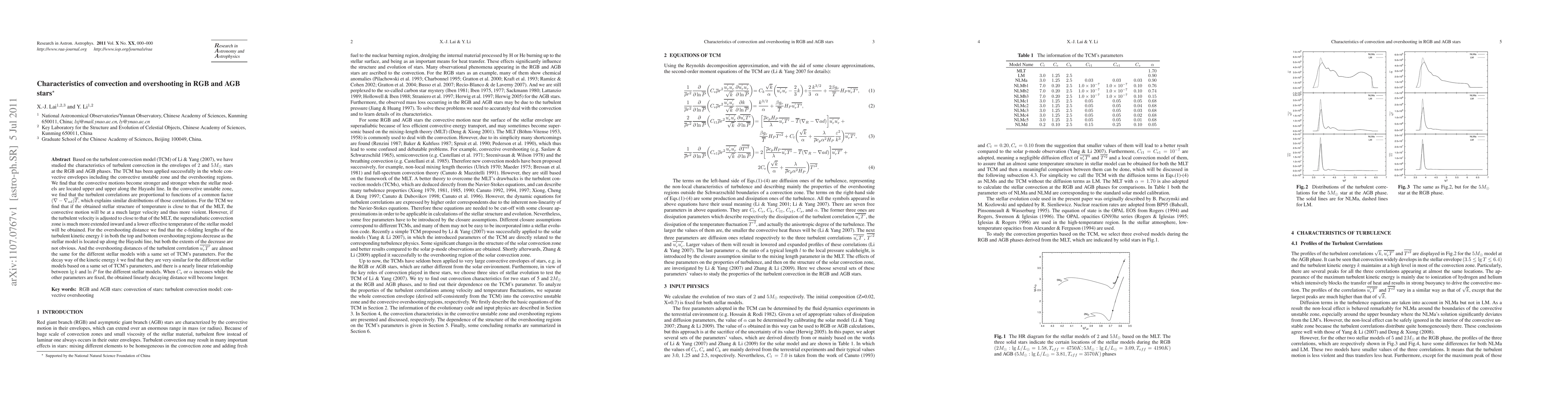 This paper uses the turbulent convection model to study convection and overshooting in 2 and 5M stars during the RGB and AGB phases. It finds stronger convective motions and more extended superadiabatic convection zones when stellar models are higher along the Hayashi line, with consistent overshooting distances across different stellar models.