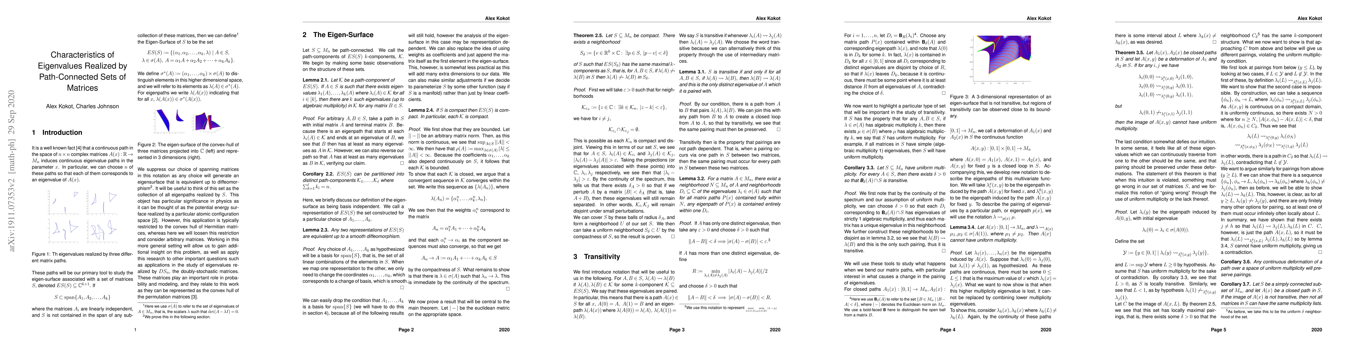We consider path-connected sets of matrices and the induced paths between eigenvalues. We discuss the equivalence relation generated by these paths, and how it relates to the presence of higher multiplicity eigenvalues realized by the set. Particular interest is applied to the convex hull of matrices, where additional characterizations are provided of this phenomena, and computational methods are given for further study.