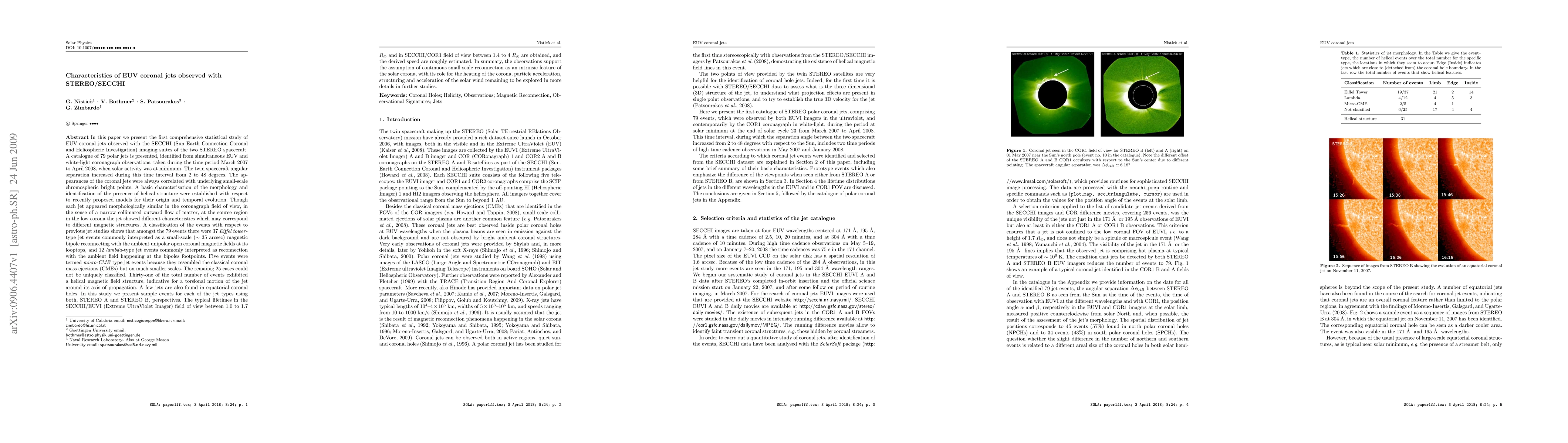 This paper presents a comprehensive statistical study of EUV coronal jets observed by STEREO/SECCHI, identifying 79 polar jets correlated with chromospheric bright points. The study classifies jets into Eiffel tower, lambda-type, and micro-CME types, supporting continuous small-scale reconnection as a key feature of the solar corona.