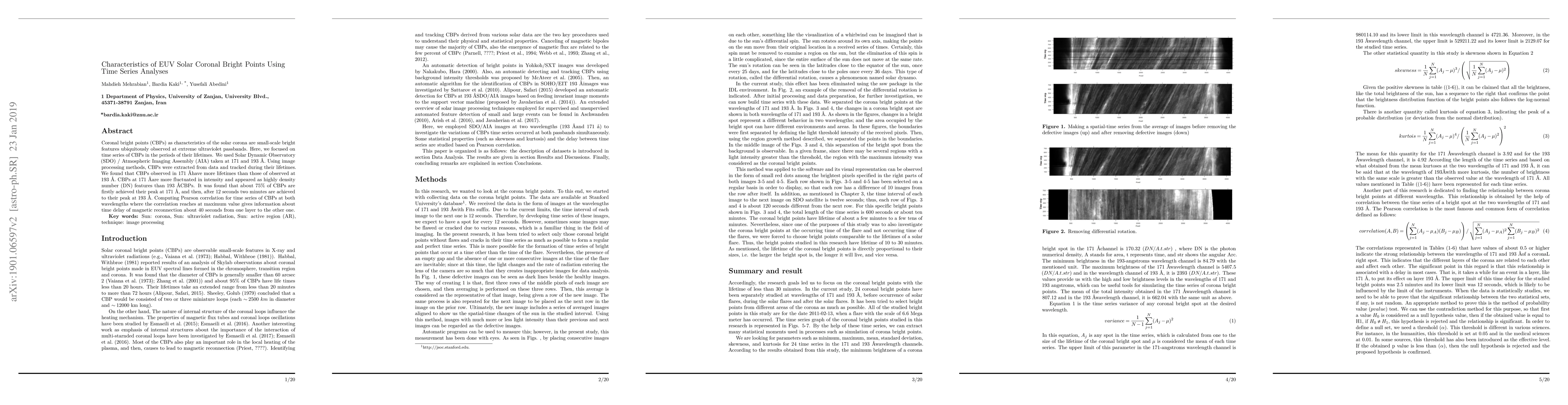 Coronal bright points (CBPs) as characteristics of the solar corona are small-scale bright features ubiquitously observed at extreme ultraviolet passbands. Here, we focused on time series of CBPs in the periods of their lifetimes. We used Solar Dynamic Observatory (SDO) / Atmospheric Imaging Assembly (AIA) taken at 171 and 193 \AA. Using image processing methods, CBPs were extracted from data and tracked during their lifetimes. We found that CBPs observed in 171 \AA have more lifetimes than those of observed at 193 \AA. CBPs at 171 \AA are more fluctuated in intensity and appeared as highly density number (DN) features than 193 \AA CBPs. It was found that about $75 \%$ of CBPs are firstly achieved their peak at 171 \AA, and then, after 12 seconds two minutes are achieved to their peak at 193 \AA. Computing Pearson correlation for time series of CBPs at both wavelengths where the correlation reaches at maximum value gives information about time delay of magnetic reconnection about 40 seconds from one layer to the other one.